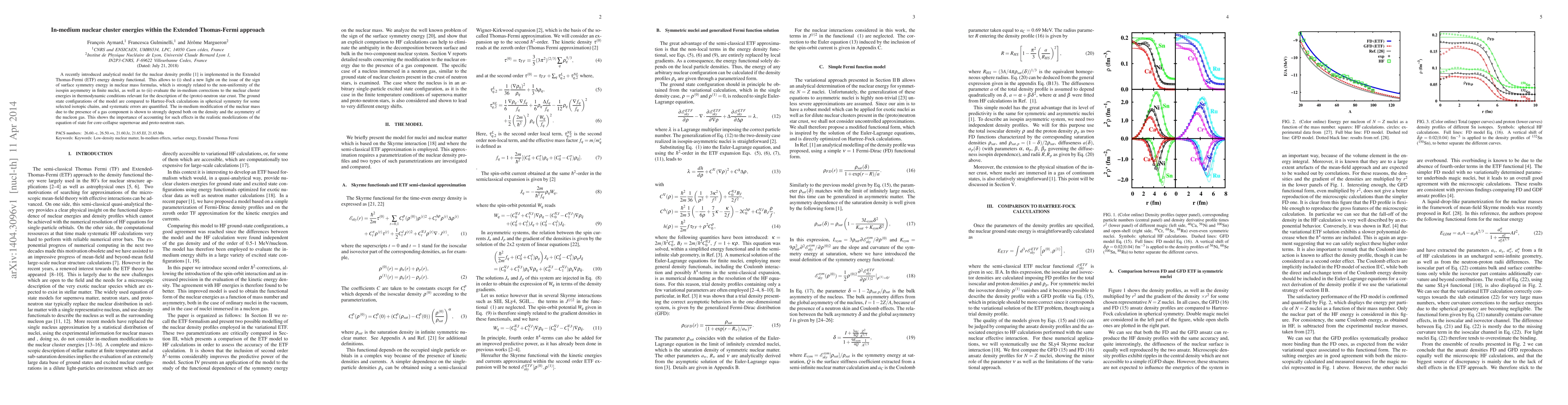 A recently introduced analytical model for the nuclear density profile[1] is implemented in the Extended Thomas-Fermi (ETF) energy density functional. This allows to (i) shed a new light on the issue of the sign of surface symmetry energy in nuclear mass formulas, which is strongly related to the non-uniformity of the isospin asymmetry in finite nuclei, as well as to (ii) evaluate the in-medium corrections to the nuclear cluster energies in thermodynamic conditions relevant for the description of the (proto)-neutron star crust. The ground state configurations of the model are compared to Hartree-Fock calculations in spherical symmetry for some selected isotopic chains, and systematic errors are quantified. The in-medium modification of the nuclear mass due to the presence of a gas component is shown to strongly depend both on the density and the asymmetry of the nucleon gas. This shows the importance of accounting for such effects in the realistic modelizations of the equation of state for core-collapse supernovae and proto-neutron stars.