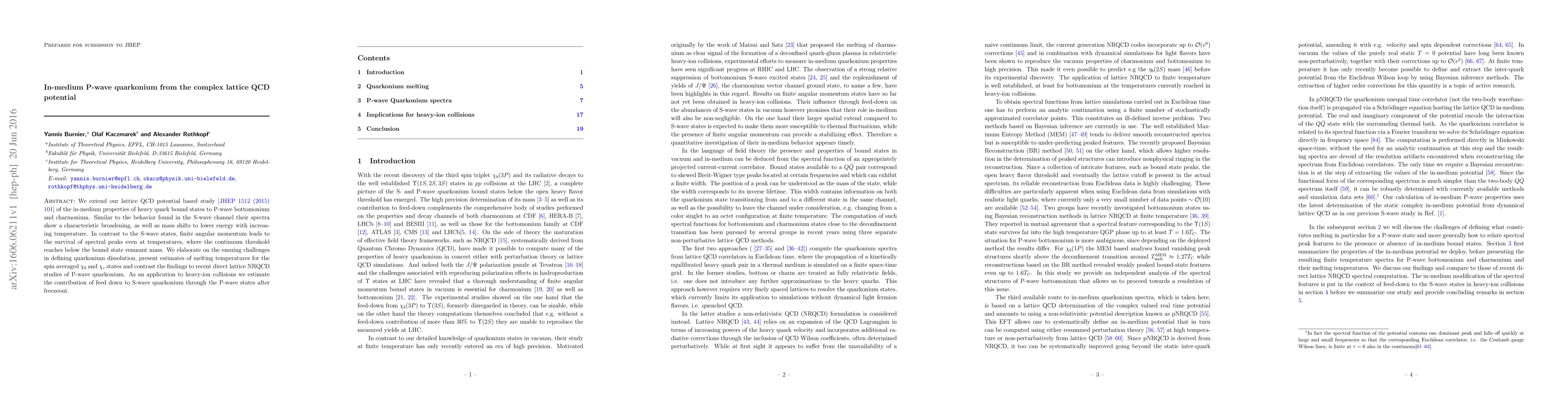 We extend our lattice QCD potential based study arXiv:1509.07366 (JHEP 1512 (2015) 101) of the in-medium properties of heavy quark bound states to P-wave bottomonium and charmonium. Similar to the behavior found in the S-wave channel their spectra show a characteristic broadening, as well as mass shifts to lower energy with increasing temperature. In contrast to the S-wave states, finite angular momentum leads to the survival of spectral peaks even at temperatures, where the continuum threshold reaches below the bound state remnant mass. We elaborate on the ensuing challenges in defining quarkonium dissolution, present estimates of melting temperatures for the spin averaged $\chi_b$ and $\chi_c$ states and contrast the findings to recent direct lattice NRQCD studies of P-wave quarkonium. As an application to heavy-ion collisions we estimate the contribution of feed down to S-wave quarkonium through the P-wave states after freezeout.