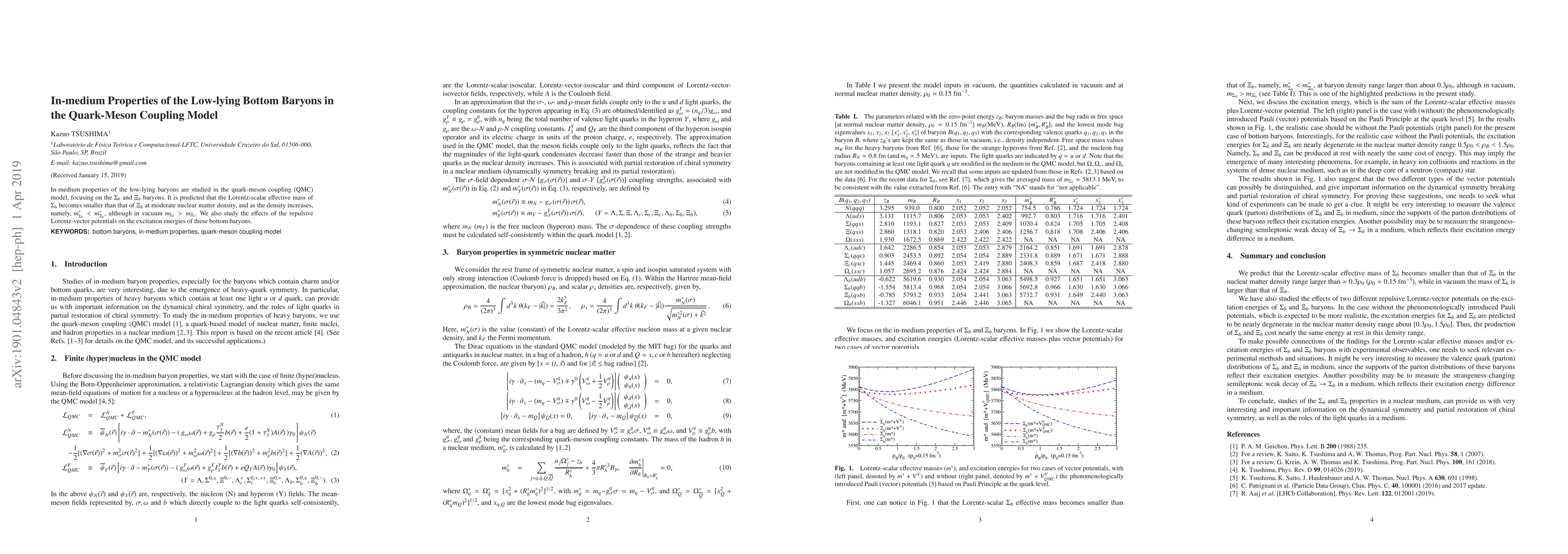 In-medium properties of the low-lying baryons are studied in the quark-meson coupling (QMC) model, focusing on the $\Sigma_b$ and $\Xi_b$ baryons. It is predicted that the Lorentz-scalar effective mass of $\Sigma_b$ becomes smaller than that of $\Xi_b$ at moderate nuclear matter density, and as the density increases, namely, $m^*_{\Sigma_b} < m^*_{\Xi_b}$, although in vacuum $m_{\Sigma_b} > m_{\Xi_b}$. We also study the effects of the repulsive Lorentz-vector potentials on the excitation energies of these bottom baryons.
