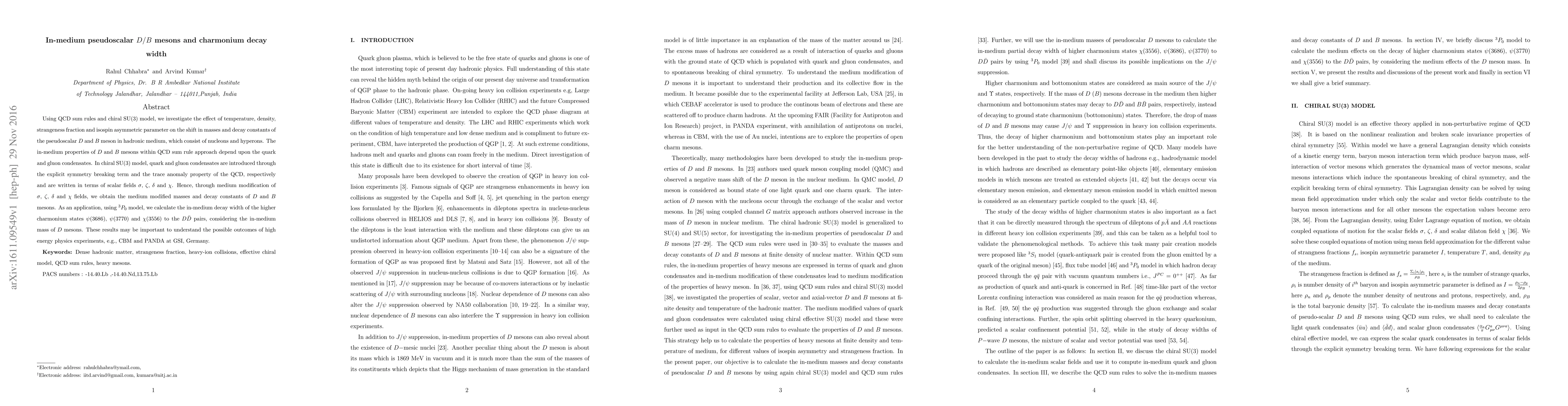 This paper investigates the effects of temperature, density, strangeness, and isospin asymmetry on the masses and decay constants of pseudoscalar $D$ and $B$ mesons in a hadronic medium using QCD sum rules and the chiral SU(3) model. The study also calculates the in-medium decay width of higher charmonium states to $D \bar{D}$ pairs, which may inform high-energy physics experiments like those at GSI.