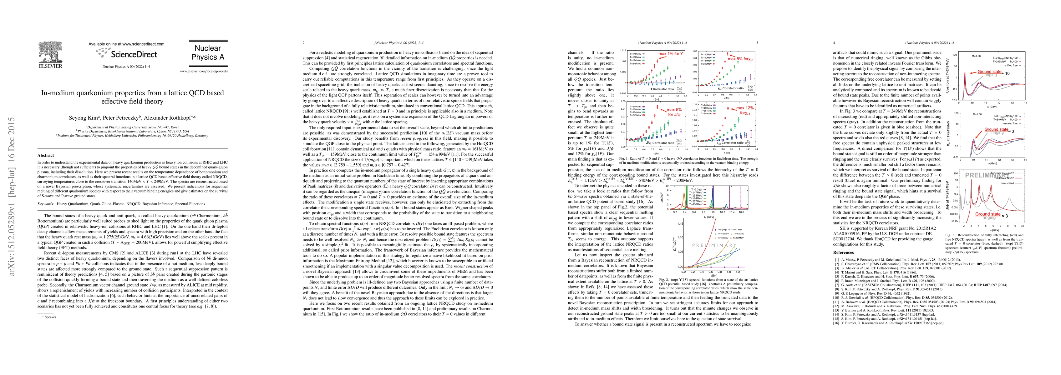In order to understand the experimental data on heavy quarkonium production in heavy ion collisions at RHIC and LHC it is necessary (though not sufficient) to pinpoint the properties of heavy $Q\bar{Q}$ bound states in the deconfined quark-gluon plasma, including their dissolution. Here we present recent results on the temperature dependence of bottomonium and charmonium correlators, as well as their spectral functions in a lattice QCD based effective field theory called NRQCD, surveying temperatures close to the crossover transition $140 {\rm MeV} < T< 249 {\rm MeV}$. The spectra are reconstructed based on a novel Bayesian prescription, whose systematic uncertainties are assessed. We present indications for sequential melting of different quarkonium species with respect to their vacuum binding energies and give estimates on the survival of S-wave and P-wave ground states.