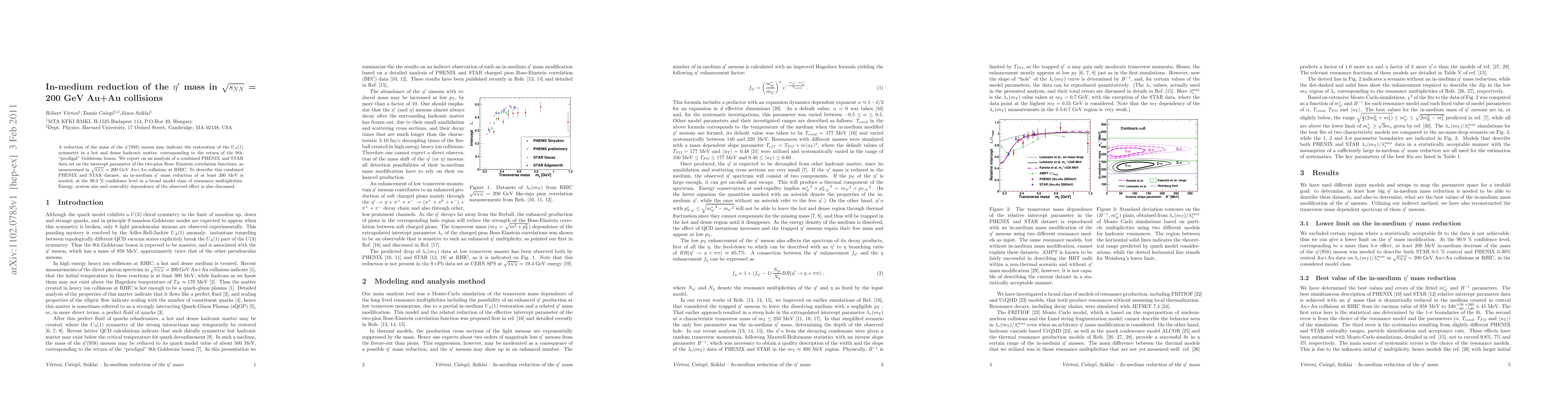 Researchers found a 200 MeV reduction in the mass of the eta' meson in heavy-ion collisions at RHIC, suggesting the restoration of UA(1) symmetry in hot and dense matter.