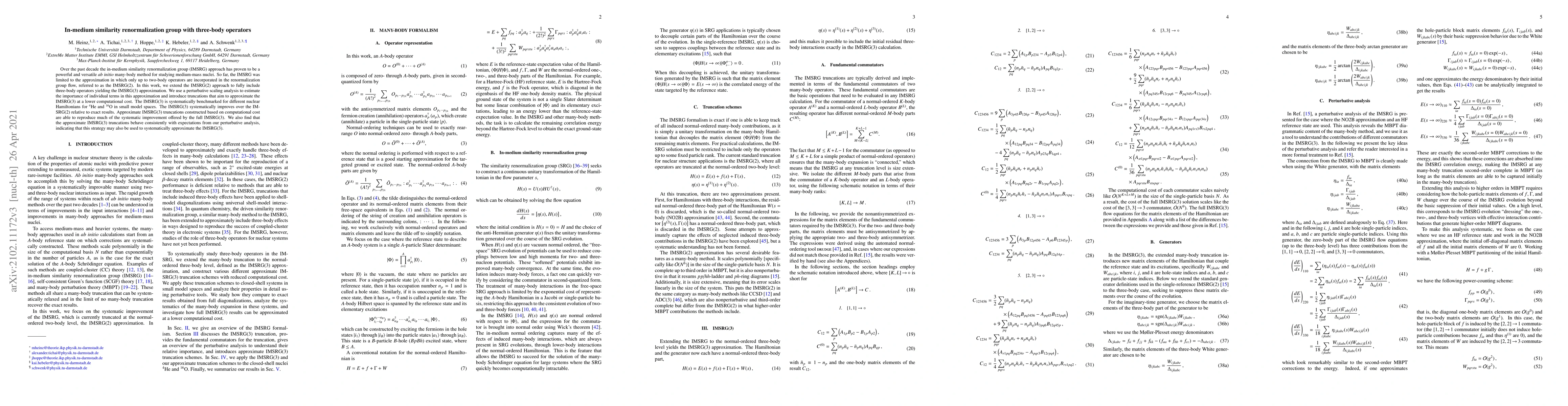 The paper extends the in-medium similarity renormalization group (IMSRG) method to include three-body operators, creating the IMSRG(3) approximation. This approach systematically improves results for medium-mass nuclei compared to the previous IMSRG(2) method, with approximate truncations maintaining much of the improvement at lower computational costs.
