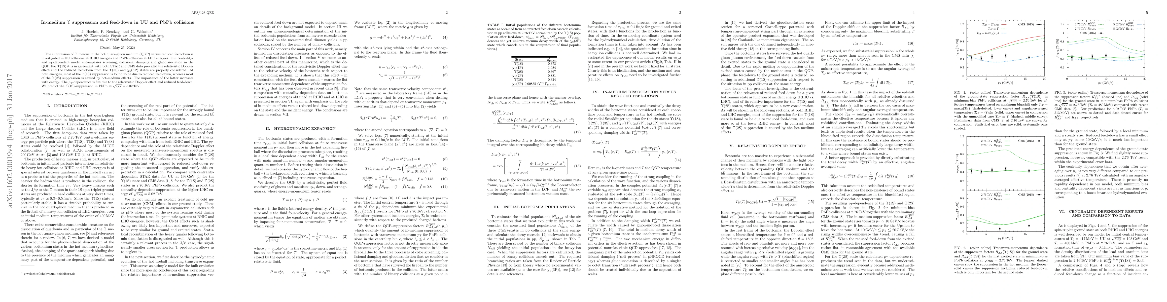 The suppression of Y mesons in the hot quark-gluon medium (QGP) versus reduced feed-down is investigated in UU collisions at RHIC energies and PbPb collisions at LHC energies. Our centrality- and p_T-dependent model encompasses screening, collisional damping and gluodissociation in the QGP. For Y(1S) it is in agreement with both STAR and CMS data provided the relativistic Doppler effect and the reduced feed-down from the Y(nS) and chi_b(nP) states are properly considered. At both energies, most of the Y(1S) suppression is found to be due to reduced feed-down, whereas most of the Y(2S) suppression is caused by the hot-medium effects. The role of the latter increases with energy. The p_T-dependence is flat due to the relativistic Doppler effect and reduced feed-down. We predict the Y(1S)-suppression in PbPb at sqrt(s_NN) = 5.02 TeV.