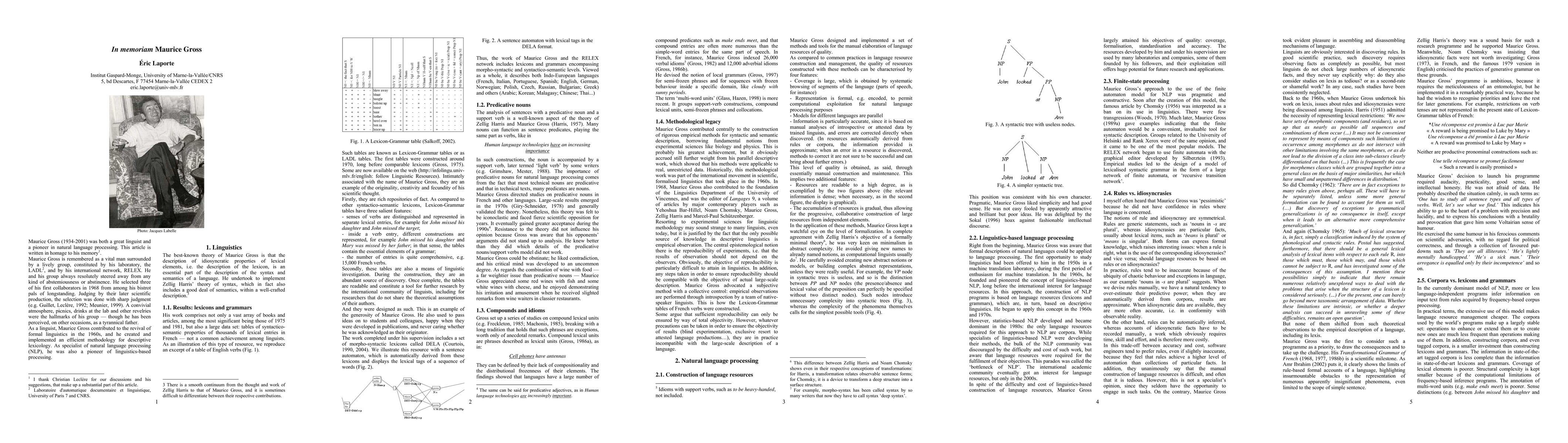 Maurice Gross (1934-2001) was both a great linguist and a pioneer in natural language processing. This article is written in homage to his memory