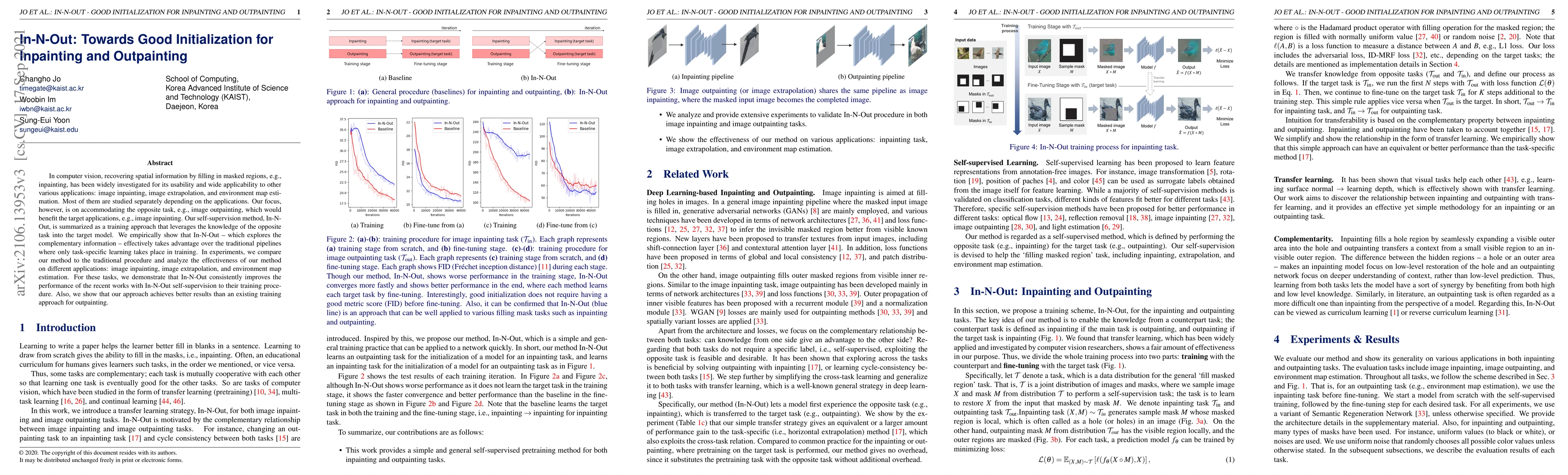 In computer vision, recovering spatial information by filling in masked regions, e.g., inpainting, has been widely investigated for its usability and wide applicability to other various applications: image inpainting, image extrapolation, and environment map estimation. Most of them are studied separately depending on the applications. Our focus, however, is on accommodating the opposite task, e.g., image outpainting, which would benefit the target applications, e.g., image inpainting. Our self-supervision method, In-N-Out, is summarized as a training approach that leverages the knowledge of the opposite task into the target model. We empirically show that In-N-Out -- which explores the complementary information -- effectively takes advantage over the traditional pipelines where only task-specific learning takes place in training. In experiments, we compare our method to the traditional procedure and analyze the effectiveness of our method on different applications: image inpainting, image extrapolation, and environment map estimation. For these tasks, we demonstrate that In-N-Out consistently improves the performance of the recent works with In-N-Out self-supervision to their training procedure. Also, we show that our approach achieves better results than an existing training approach for outpainting.
