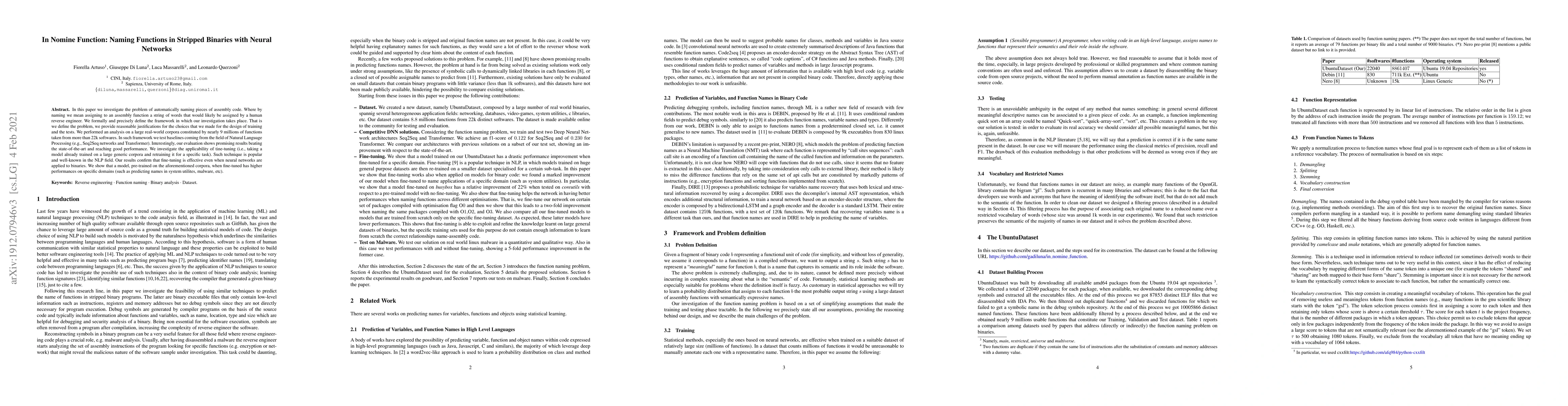 Researchers developed a system that uses neural networks to automatically name assembly functions in software binaries, achieving promising results that outperform existing methods. Fine-tuning pre-trained models on specific tasks also improved performance.