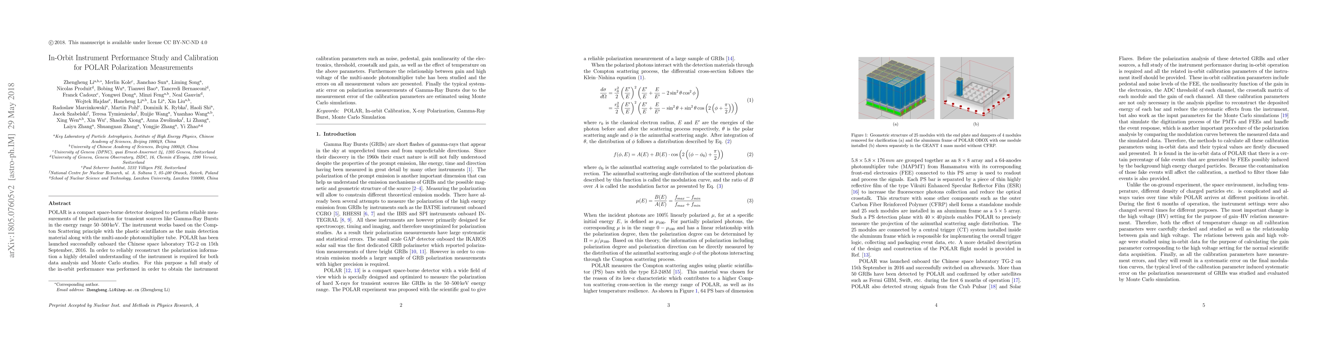 POLAR is a compact space-borne detector designed to perform reliable measurements of the polarization for transient sources like Gamma-Ray Bursts in the energy range 50-500keV. The instrument works based on the Compton Scattering principle with the plastic scintillators as the main detection material along with the multi-anode photomultiplier tube. POLAR has been launched successfully onboard the Chinese space laboratory TG-2 on 15th September, 2016. In order to reliably reconstruct the polarization information a highly detailed understanding of the instrument is required for both data analysis and Monte Carlo studies. For this purpose a full study of the in-orbit performance was performed in order to obtain the instrument calibration parameters such as noise, pedestal, gain nonlinearity of the electronics, threshold, crosstalk and gain, as well as the effect of temperature on the above parameters. Furthermore the relationship between gain and high voltage of the multi-anode photomultiplier tube has been studied and the errors on all measurement values are presented. Finally the typical systematic error on polarization measurements of Gamma-Ray Bursts due to the measurement error of the calibration parameters are estimated using Monte Carlo simulations.