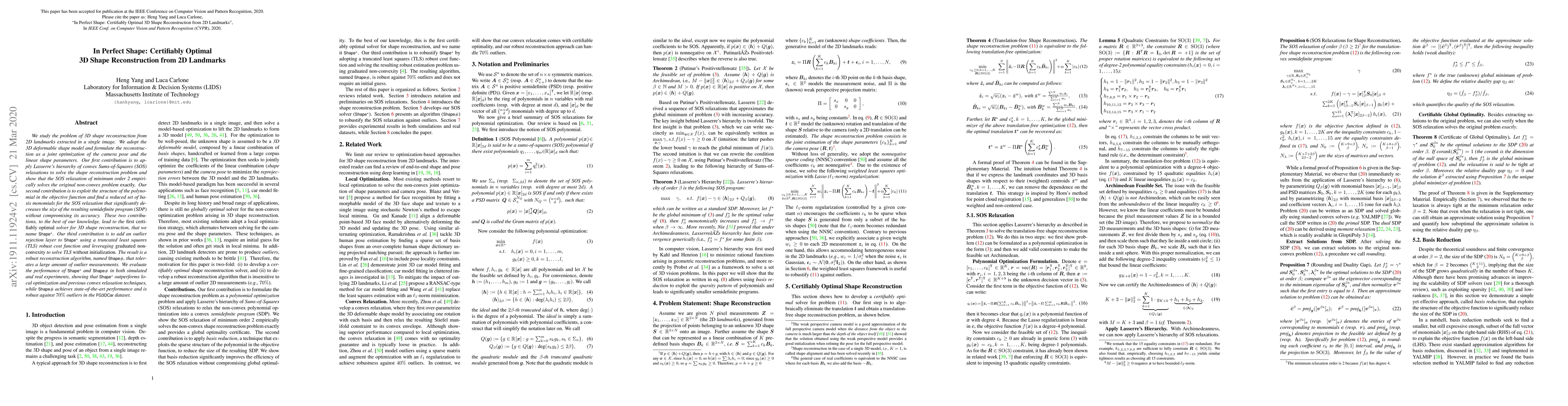 This paper presents Shape* and Shape#, novel algorithms for 3D shape reconstruction from 2D landmarks using convex SOS relaxations and robust optimization. Shape* leverages Lasserre's hierarchy to achieve certifiably optimal solutions, while Shape# incorporates outlier rejection for robust performance against up to 70% outliers.