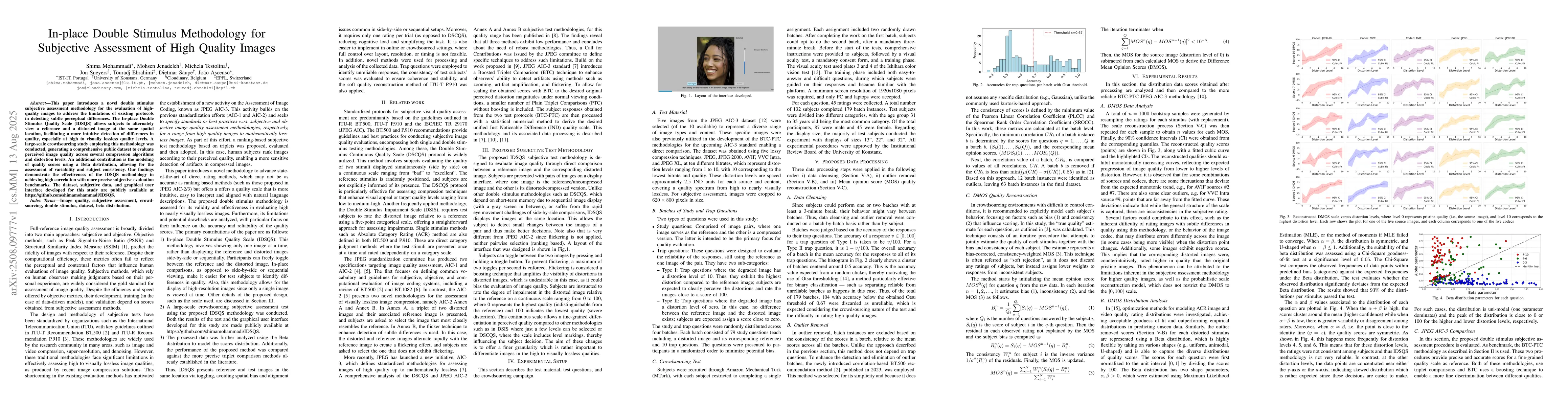 This paper introduces a novel double stimulus subjective assessment methodology for the evaluation of high quality images to address the limitations of existing protocols in detecting subtle perceptual differences. The In-place Double Stimulus Quality Scale (IDSQS) allows subjects to alternately view a reference and a distorted image at the same spatial location, facilitating a more intuitive detection of differences in quality, especially at high to visually lossless quality levels. A large-scale crowdsourcing study employing this methodology was conducted, generating a comprehensive public dataset to evaluate perceived image quality across several compression algorithms and distortion levels. An additional contribution is the modeling of quality scores using a Beta distribution, allowing for the assessment of variability and subject consistency. Our findings demonstrate the effectiveness of the IDSQS methodology in achieving high correlation with more precise subjective evaluation benchmarks. The dataset, subjective data, and graphical user interface developed for this study are publicly available at https://github.com/shimamohammadi/IDSQS