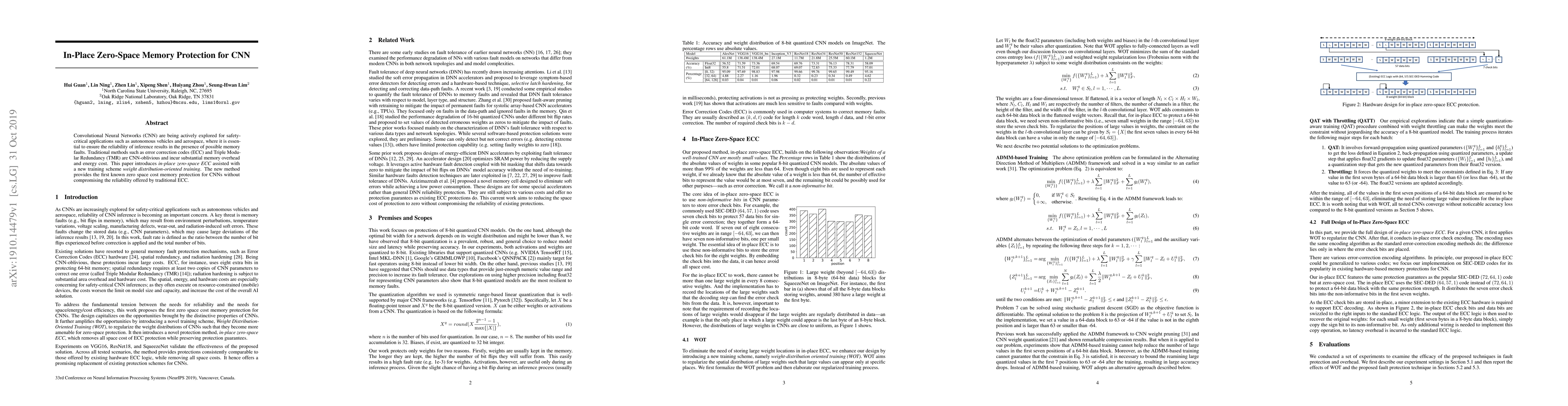 This paper proposes an in-place zero-space memory protection method for CNNs using ECC, combined with a weight distribution-oriented training scheme, to ensure reliability in safety-critical applications without additional memory overhead.