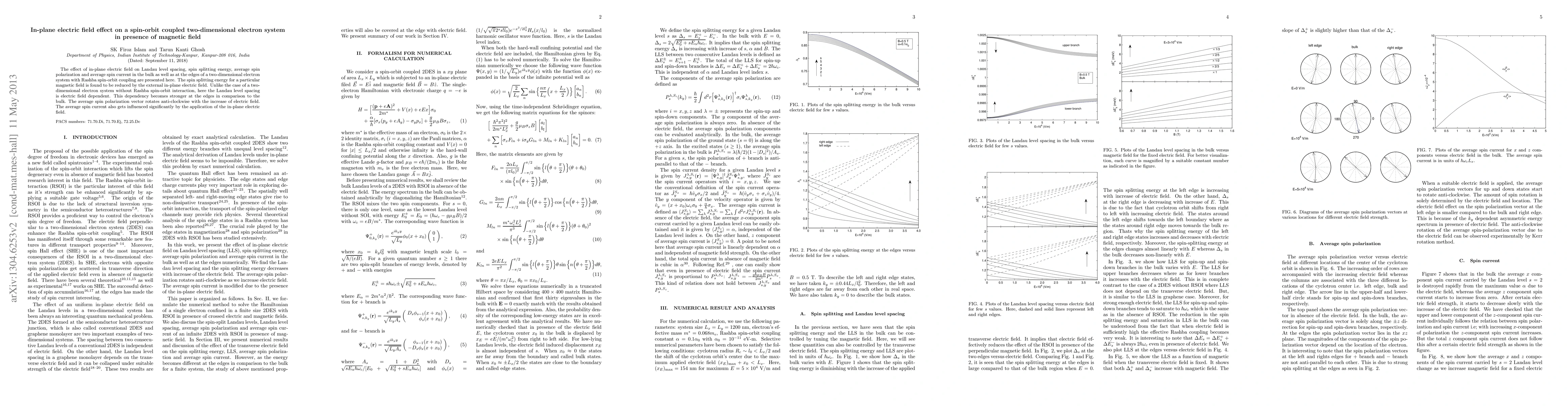 This study investigates the impact of an in-plane electric field on a spin-orbit coupled two-dimensional electron system under a magnetic field, revealing that the electric field reduces spin splitting energy and alters Landau level spacing, which is more pronounced at the edges. The electric field also causes the average spin polarization vector to rotate anti-clockwise and significantly influences the average spin current.