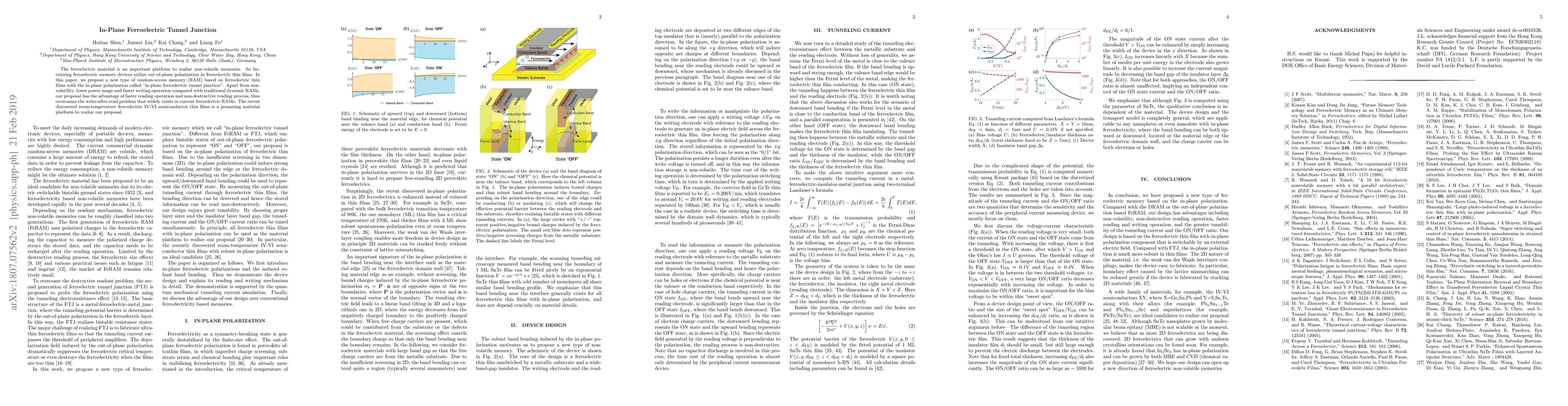 This paper proposes a novel "in-plane ferroelectric tunnel junction" RAM utilizing ferroelectric thin films with in-plane polarization, offering non-volatility, lower power usage, and faster reading operations, while overcoming the write-after-read problem prevalent in current ferroelectric RAMs. Room-temperature ferroelectric IV-VI semiconductor thin films are identified as a promising material for this new technology.