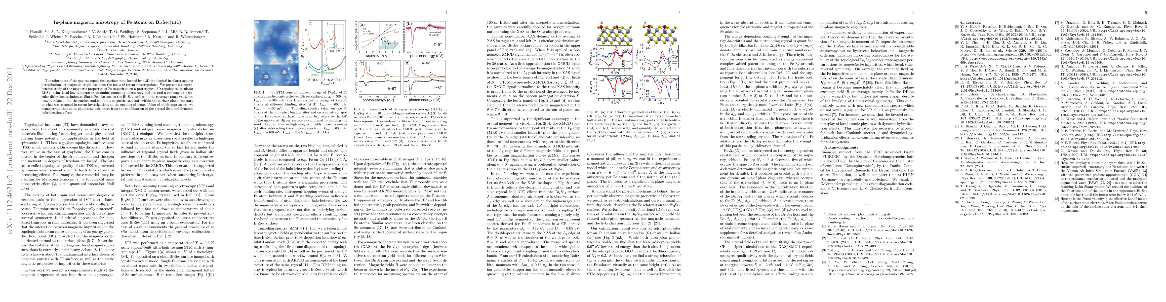 This study investigates the magnetic anisotropy of Fe atoms on Bi$_2$Se$_3$(111) using scanning tunneling microscopy and x-ray magnetic circular dichroism, revealing that Fe adatoms exhibit an in-plane magnetic easy axis due to the interplay of crystal field and hybridization effects, contrary to previous assumptions.