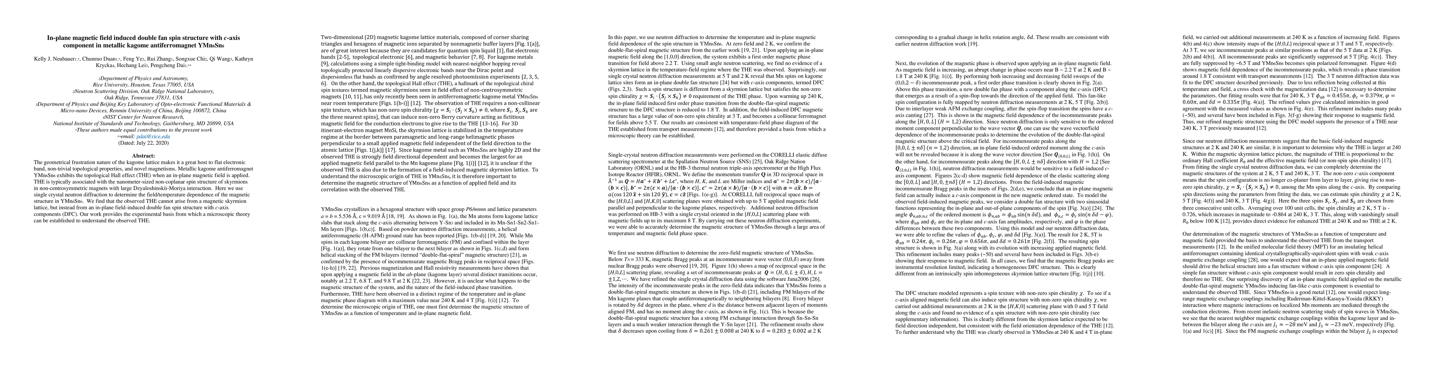 The geometrical frustration nature of the kagome lattice makes it a great host to flat electronic band, non-trivial topological properties, and novel magnetisms. Metallic kagome antiferromagnet YMn$_{6}$Sn$_{6}$ exhibits the topological Hall effect (THE) when an in-plane magnetic field is applied. THE is typically associated with the nanometer-sized non-coplanar spin structure of skyrmions in non-centrosymmetric magnets with large Dzyaloshinskii-Moriya interaction. Here we use single crystal neutron diffraction to determine the field/temperature dependence of the magnetic structure in YMn$_{6}$Sn$_{6}$. We find that the observed THE cannot arise from a magnetic skyrmion lattice, but instead from an in-plane field-induced double fan spin structure with $\textit{c}$-axis components (DFC). Our work provides the experimental basis from which a microscopic theory can be established to understand the observed THE.