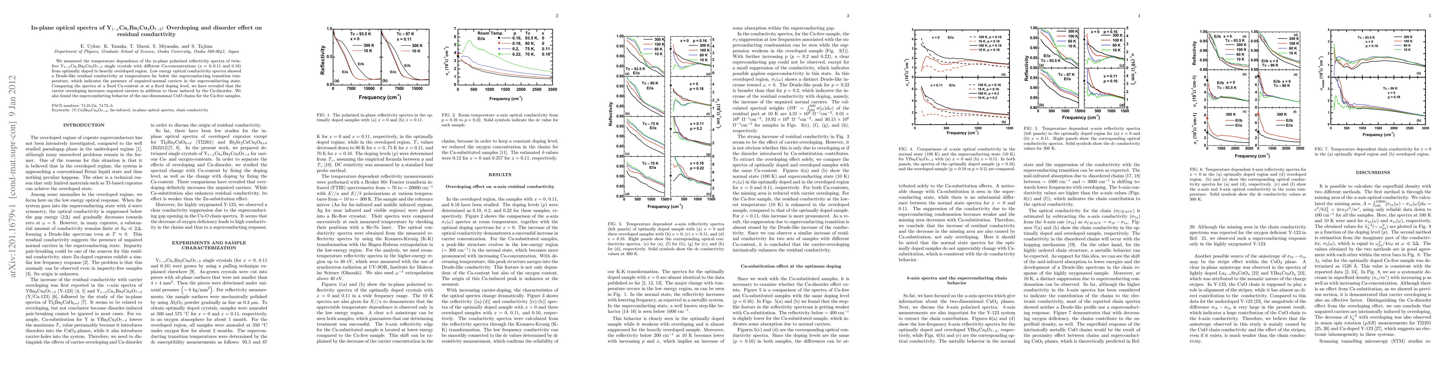 This paper investigates the temperature dependence of optical spectra in Y$_{1-x}$Ca$_{x}$Ba$_{2}$Cu$_{3}$O$_{7-{\delta}}$ single crystals, revealing a Drude-like residual conductivity indicating unpaired carriers in the superconducting state. Overdoping and Ca-induced disorder both increase these unpaired carriers, while Ca-free samples exhibit superconducting behavior in CuO chains.