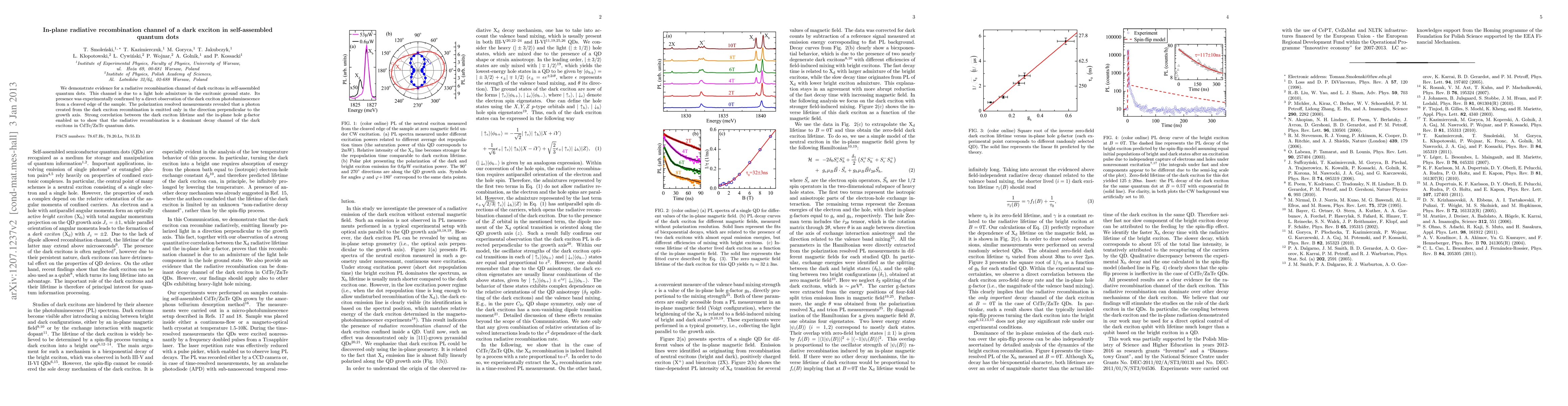 Summary: Researchers provide evidence for a radiative recombination channel of dark excitons in self-assembled quantum dots, revealing light hole admixture in the excitonic ground state. Experimental observations and polarization measurements confirm that the emitted photon is perpendicular to the growth axis, and a strong correlation between the dark exciton lifetime and the in-plane hole g-factor indicates this recombination as the dominant decay channel in CdTe/ZnTe quantum dots.
