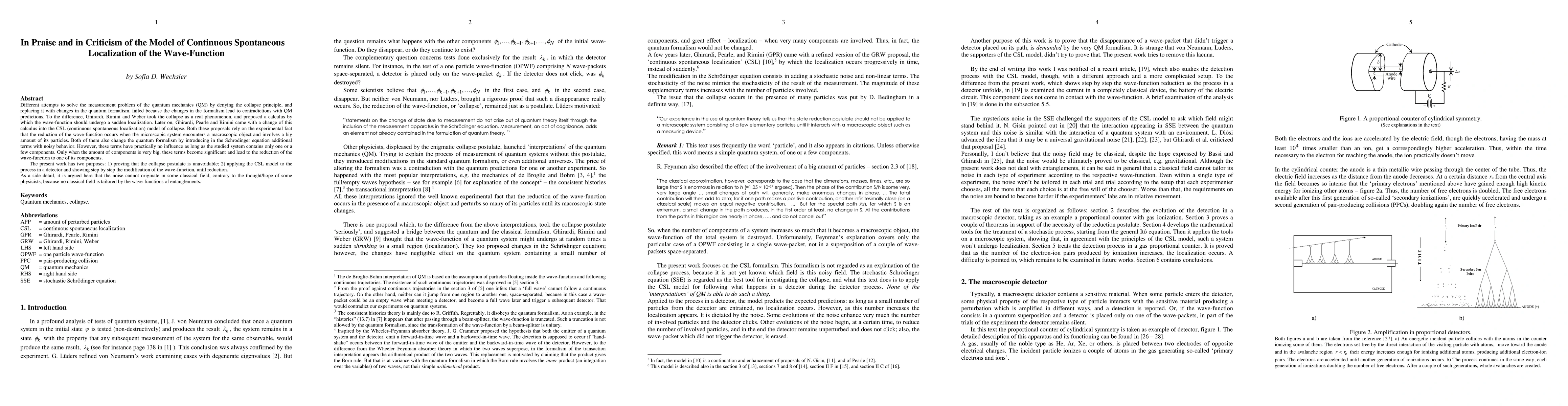 Different attempts to solve the measurement problem of the quantum mechanics (QM) by denying the collapse principle, and replacing it with changes in the quantum formalism, failed because the changes in the formalism lead to contradictions with QM predictions. To the difference, Ghirardi, Rimini and Weber took the collapse as a real phenomenon, and proposed a calculus by which the wave-function should undergo a sudden localization. Later on, Ghirardi, Pearle and Rimini came with a change of this calculus into the CSL (continuous spontaneous localization) model of collapse. Both these proposals rely on the experimental fact that the reduction of the wave-function occurs when the microscopic system encounters a macroscopic object and involves a big amount of its particles. Both of them also change the quantum formalism by introducing in the Schrodinger equation additional terms with noisy behavior. However, these terms have practically no influence as long as the studied system contains only one or a few components. Only when the amount of components is very big, these terms become significant and lead to the reduction of the wave-function to one of its components. The present work has two purposes: 1) proving that the collapse postulate is unavoidable; 2) applying the CSL model to the process in a detector and showing step by step the modification of the wave-function, until reduction. As a side detail, it is argued here that the noise cannot originate in some classical field, contrary to the thought/hope of some physicists, because no classical field is tailored by the wave-functions of entanglements.