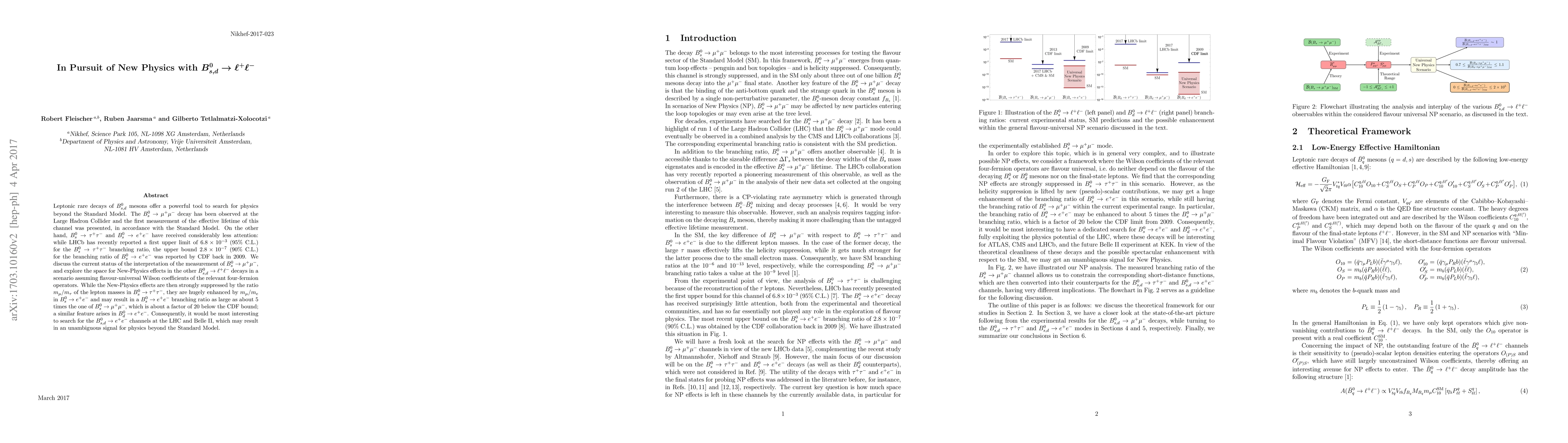 This paper investigates leptonic rare decays of $B^0_{s,d}$ mesons to search for physics beyond the Standard Model, focusing on the $B^0_s\to\mu^+\mu^-$ decay and exploring potential New-Physics effects in $B^0_{s,d}\to\ell^+\ell^-$ decays, particularly $B^0_s\to e^+e^-$, which could indicate significant deviations from Standard Model predictions.
