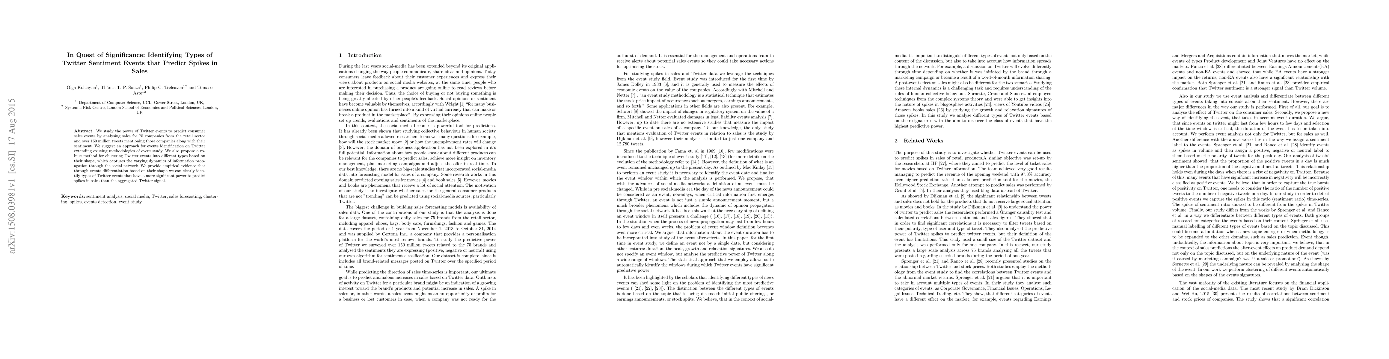 This research investigates how specific types of Twitter sentiment events can predict sales spikes for 75 retail companies by analyzing over 150 million tweets. It introduces a novel method for identifying and clustering Twitter events based on their shape, revealing that differentiated event types have a stronger predictive power for sales than the overall Twitter sentiment.
