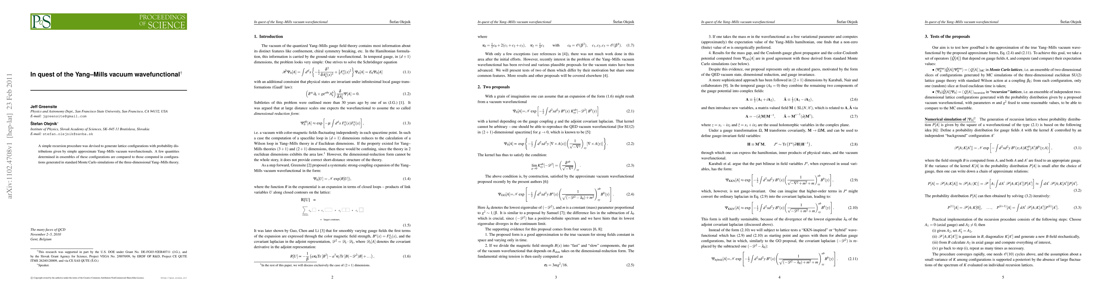 The paper proposes a recursion method to generate lattice configurations matching approximate Yang-Mills vacuum wavefunctionals, and compares derived quantities from these configurations to standard Monte Carlo simulation results in three-dimensional Yang-Mills theory.