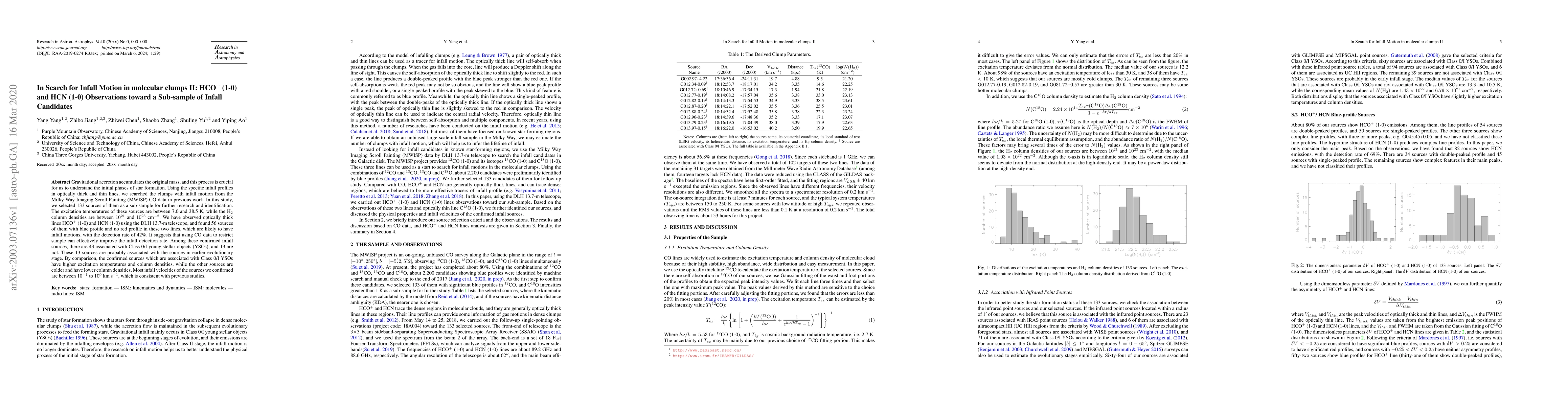 Researchers identified 43 Class 0/I young stellar objects with infall motions among 133 molecular clumps, improving detection rates when using CO data to restrict sample.
