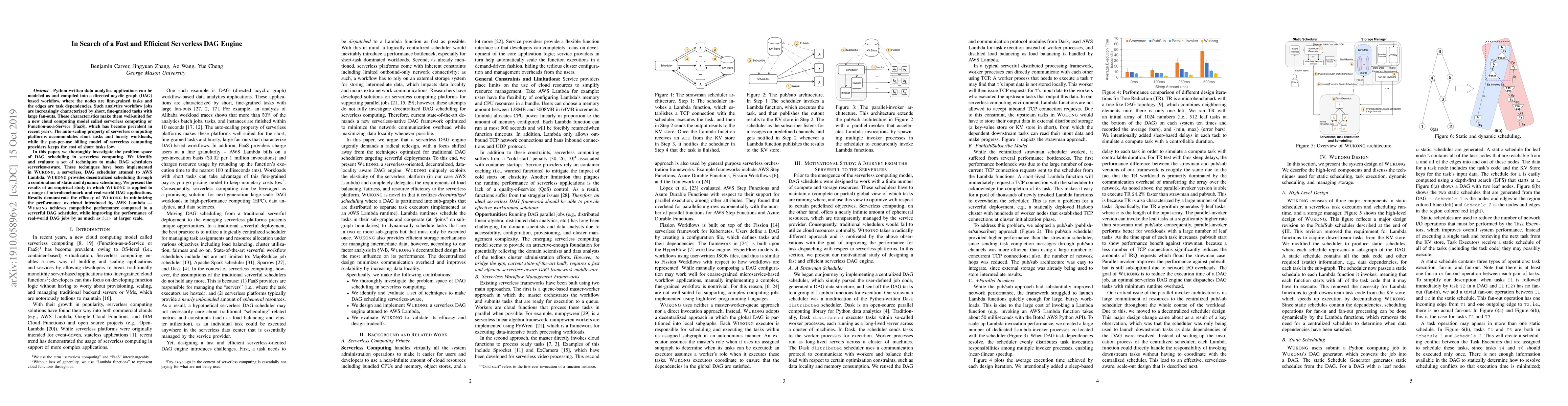 This paper explores techniques to optimize DAG scheduling for serverless computing, implementing these in Wukong, a serverless DAG scheduler for AWS Lambda. Empirical results show Wukong minimizes performance overhead, achieving competitive performance and up to 3.1X better performance for large-scale real-world DAG applications.