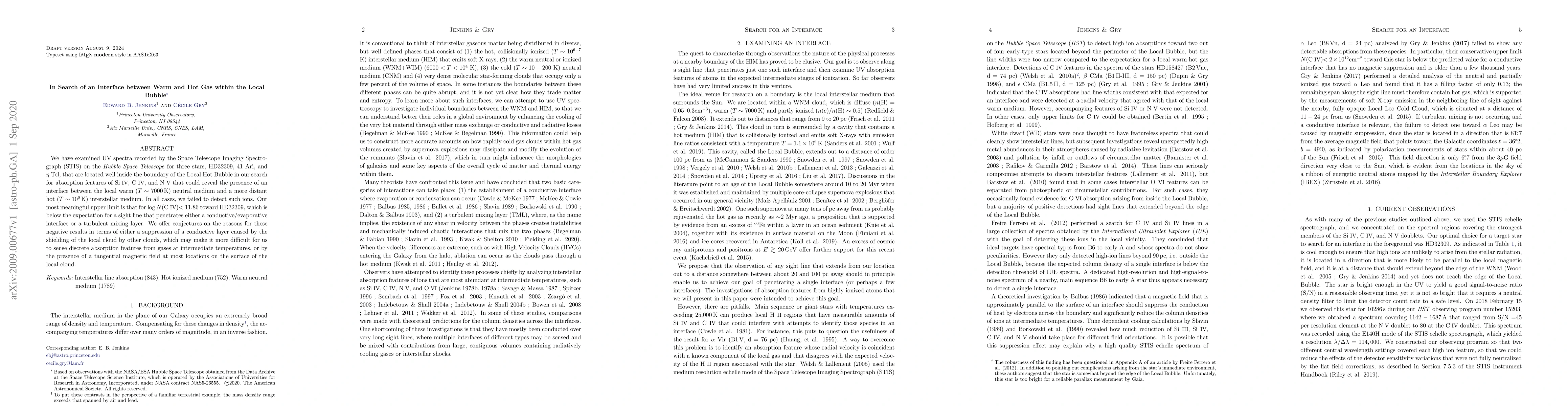 We have examined UV spectra recorded by the Space Telescope Imaging Spectrograph (STIS) on the Hubble Space Telescope for three stars, HD32309, 41 Ari, and $\eta$~Tel, that are located well inside the boundary of the Local Hot Bubble in our search for absorption features of Si IV, C IV, and N V that could reveal the presence of an interface between the local warm ($T\sim 7000$ K) neutral medium and a more distant hot ($T\sim 10^6$ K) interstellar medium. In all cases, we failed to detect such ions. Our most meaningful upper limit is that for log N(C IV)< 11.86 toward HD32309, which is below the expectation for a sight line that penetrates either a conductive/evaporative interface or a turbulent mixing layer. We offer conjectures on the reasons for these negative results in terms of either a suppression of a conductive layer caused by the shielding of the local cloud by other clouds, which may make it more difficult for us to sense discrete absorption features from gases at intermediate temperatures, or by the presence of a tangential magnetic field at most locations on the surface of the local cloud.