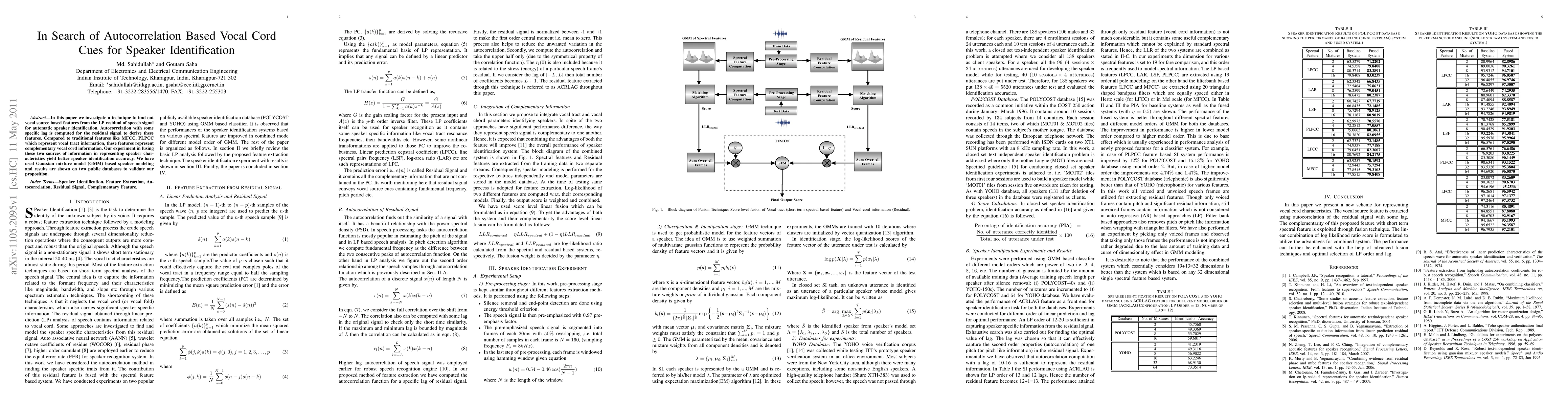 Researchers developed a new technique to improve speaker identification accuracy by using autocorrelation features from the vocal source of speech signals. This approach outperforms traditional features like MFCC when combined with existing speaker modeling methods.