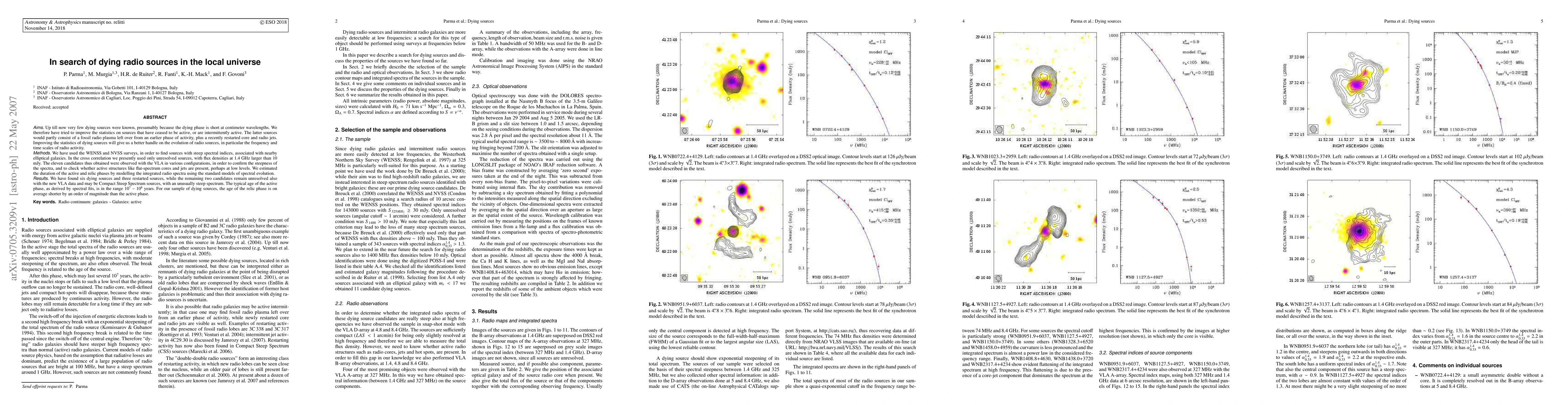 Up till now very few dying sources were known, presumably because the dying phase is short at centimeter wavelengths. We therefore have tried to improve the statistics on sources that have ceased to be active, or are intermittently active. The latter sources would partly consist of a fossil radio plasma left over from an earlier phase of activity, plus a recently restarted core and radio jets. Improving the statistics of dying sources will give us a better handle on the evolution of radio sources, in particular the frequency and time scales of radio activity. We have used the WENSS and NVSS surveys, in order to find sources with steep spectral indices, associated with nearby elliptical galaxies. In the cross correlation we presently used only unresolved sources, with flux densities at 1.4 GHz larger than 10 mJy. The eleven candidates thus obtained were observed with the VLA in various configurations, in order to confirm the steepness of the spectra, and to check whether active structures like flat-spectrum cores and jets are present, perhaps at low levels. We estimated the duration of the active and relic phases by modelling the integrated radio spectra using the standard models of spectral evolution. We have found six dying sources and three restarted sources, while the remaining two candidates remain unresolved also with the new VLA data and may be Compact Steep Spectrum sources, with an unusually steep spectrum. The typical age of the active phase, as derived by spectral fits, is in the range 10^7 - 10^8 years. For our sample of dying sources, the age of the relic phase is on average shorter by an order of magnitude than the active phase.