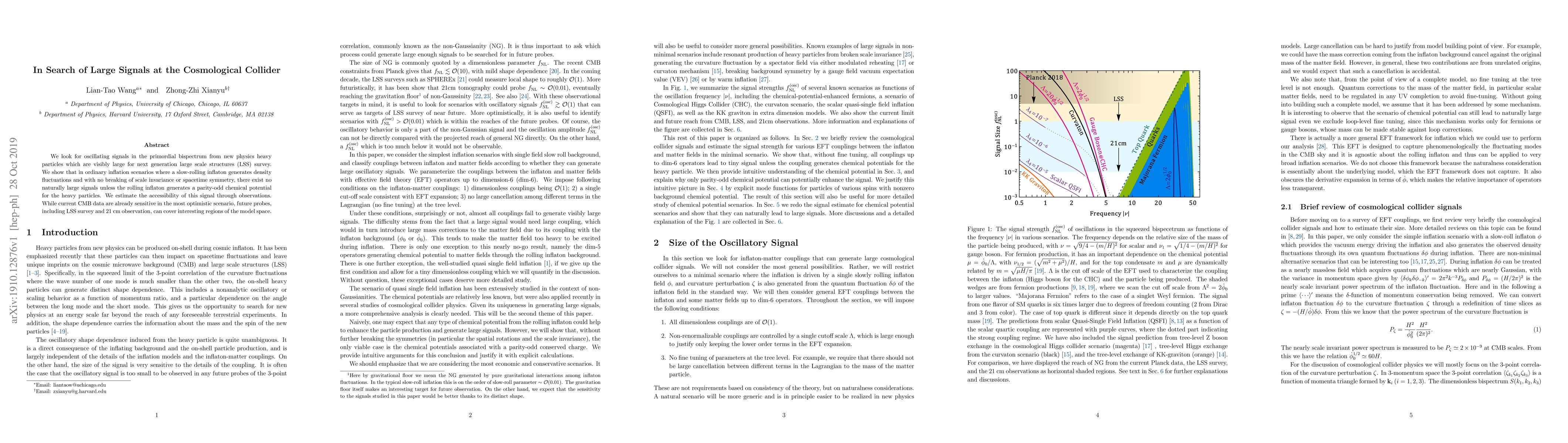 Researchers searched for large signals from new physics heavy particles in the primordial bispectrum of the universe. They found that such signals may only exist if a rolling inflaton generates a parity-odd chemical potential.