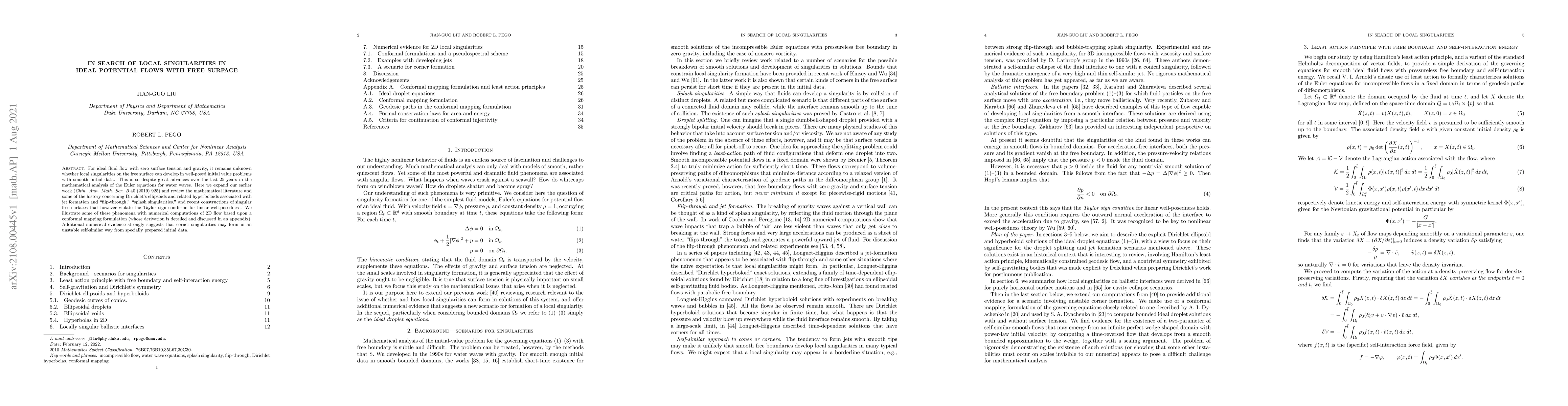 For ideal fluid flow with zero surface tension and gravity, it remains unknown whether local singularities on the free surface can develop in well-posed initial value problems with smooth initial data. This is so despite great advances over the last 25 years in the mathematical analysis of the Euler equations for water waves. Here we expand our earlier work (Chin. Ann. Math. Ser. B 40 (2019) 925) and review the mathematical literature and some of the history concerning Dirichlet's ellipsoids and related hyperboloids associated with jet formation and "flip-through," "splash singularities," and recent constructions of singular free surfaces that however violate the Taylor sign condition for linear well-posedness. We illustrate some of these phenomena with numerical computations of 2D flow based upon a conformal mapping formulation (whose derivation is detailed and discussed in an appendix). Additional numerical evidence strongly suggests that corner singularities may form in an unstable self-similar way from specially prepared initial data.