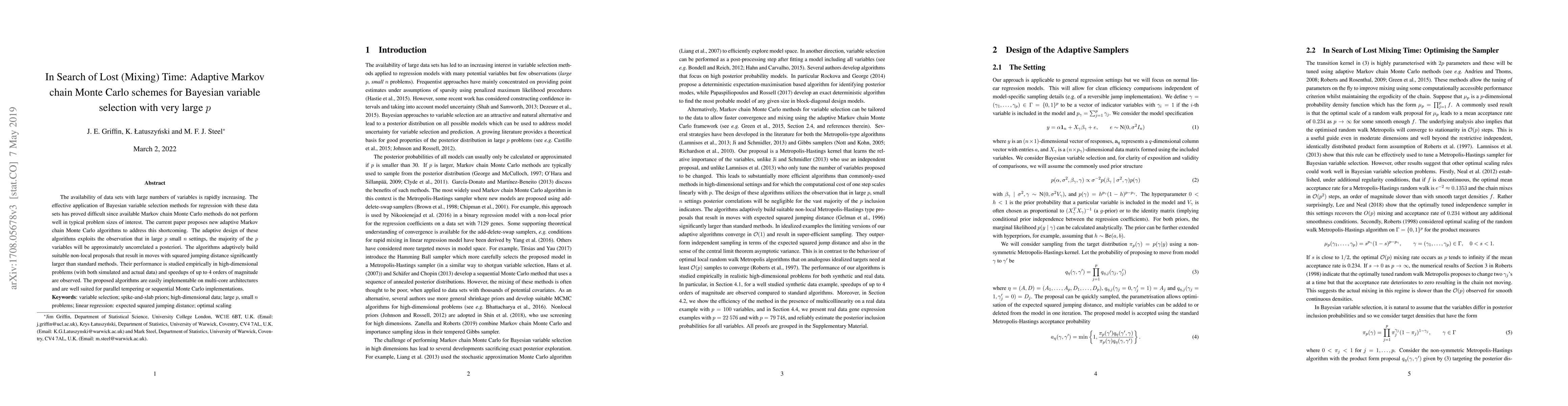 This paper proposes new adaptive Markov chain Monte Carlo algorithms for Bayesian variable selection in high-dimensional regression problems, achieving significant speedups by exploiting variable correlations and enabling efficient parallelization. Empirical studies show performance improvements of up to 4 orders of magnitude.