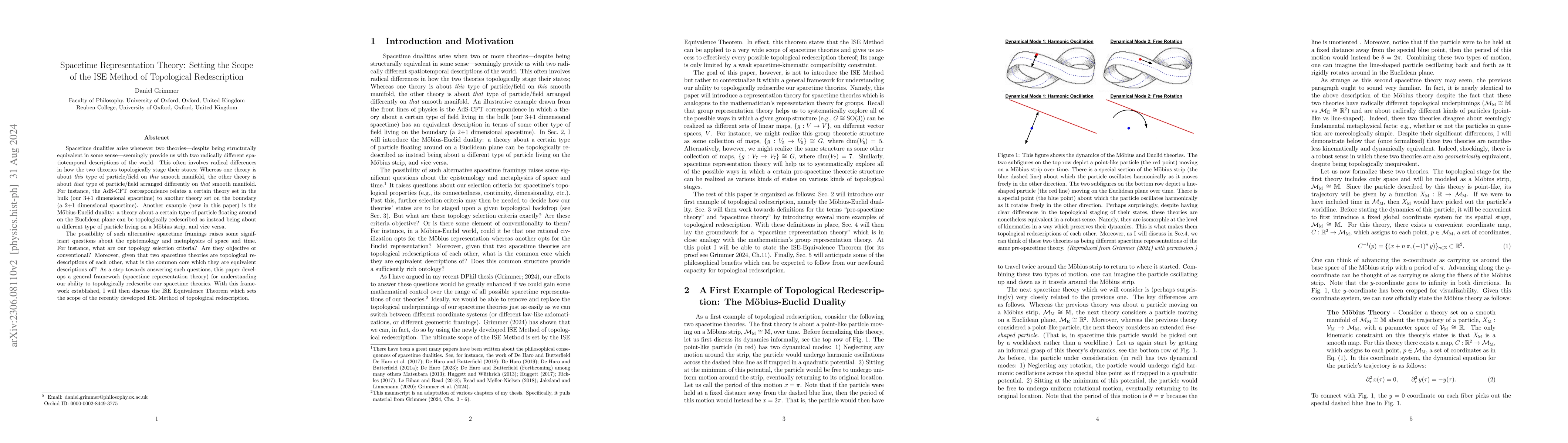 Grimmer (2023) proposes the ISE Methodology for topological redescription of spacetime, allowing for the interchange of spacetime theories akin to coordinate transformations. He demonstrates that this approach supports a non-metaphysical view of spacetime as merely a representation of the world's dynamics, akin to a Humean perspective on laws. The paper proves ISE-equivalence as an equivalence relation, showing that ISE-equivalent theories share kinematic compatibility and a dynamics-preserving isomorphism.