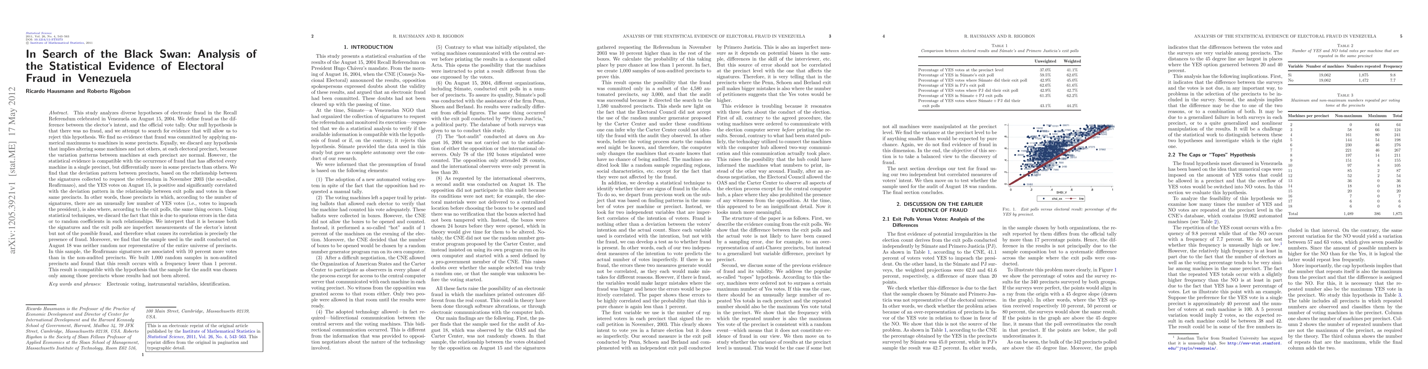This study analyzes diverse hypotheses of electronic fraud in the Recall Referendum celebrated in Venezuela on August 15, 2004. We define fraud as the difference between the elector's intent, and the official vote tally. Our null hypothesis is that there was no fraud, and we attempt to search for evidence that will allow us to reject this hypothesis. We find no evidence that fraud was committed by applying numerical maximums to machines in some precincts. Equally, we discard any hypothesis that implies altering some machines and not others, at each electoral precinct, because the variation patterns between machines at each precinct are normal. However, the statistical evidence is compatible with the occurrence of fraud that has affected every machine in a single precinct, but differentially more in some precincts than others. We find that the deviation pattern between precincts, based on the relationship between the signatures collected to request the referendum in November 2003 (the so-called, Reafirmazo), and the YES votes on August 15, is positive and significantly correlated with the deviation pattern in the relationship between exit polls and votes in those same precincts. In other words, those precincts in which, according to the number of signatures, there are an unusually low number of YES votes (i.e., votes to impeach the president), is also where, according to the exit polls, the same thing occurs.