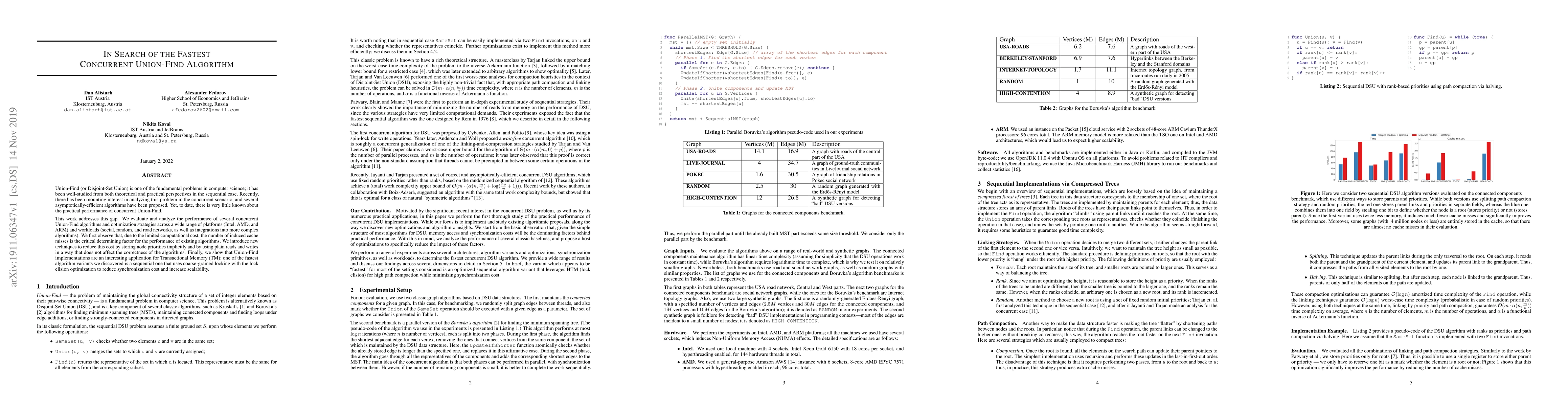 This paper evaluates the performance of concurrent Union-Find algorithms across various platforms and workloads, introducing new techniques to reduce cache misses and exploring its applicability to Transactional Memory.