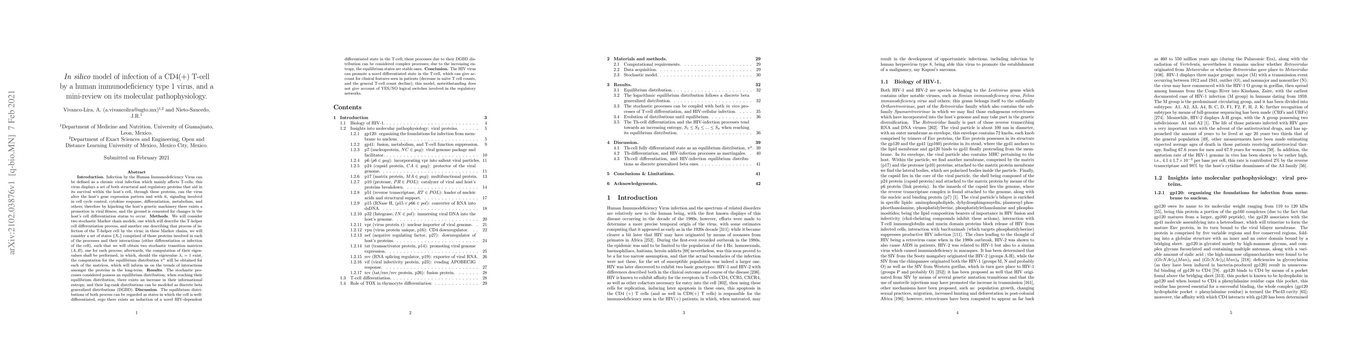 Introduction. Can the infection due to the human immunodeficiency virus type 1 induce a change in the differentiation status or process in T cells?. Methods. We will consider two stochastic Markov chain models, one which will describe the T-helper cell differentiation process, and another one describing that process of infection of the T-helper cell by the virus; in these Markov chains, we will consider a set of states $\{X_t \}$ comprised of those proteins involved in each of the processes and their interactions (either differentiation or infection of the cell), such that we will obtain two stochastic transition matrices ($A,B$), one for each process; afterwards, the computation of their eigenvalues shall be performed, in which, should the eigenvalue $\lambda_i=1$ exist, the computation for the equilibrium distribution $\pi^n$ will be obtained for each of the matrices, which will inform us on the trends of interactions amongst the proteins in the long-term. Results. The stochastic processes considered possess an equilibrium distribution, when reaching their equilibrium distribution, there exists an increase in their informational entropy, and their log-rank distributions can be modeled as discrete beta generalized distributions (DGBD). Discussion. The equilibrium distributions of both process can be regarded as states in which the cell is well-differentiated, ergo there exists an induction of a novel HIV-dependent differentiated state in the T-cell; these processes due to their DGBD distribution can be considered complex processes; due to the increasing entropy, the equilibrium states are stable ones. Conclusion. The HIV virus can promote a novel differentiated state in the T-cell, which can give account for clinical features seen in patients; this model, notwithstanding does not give account of YES/NO logical switches involved in the regulatory networks.
