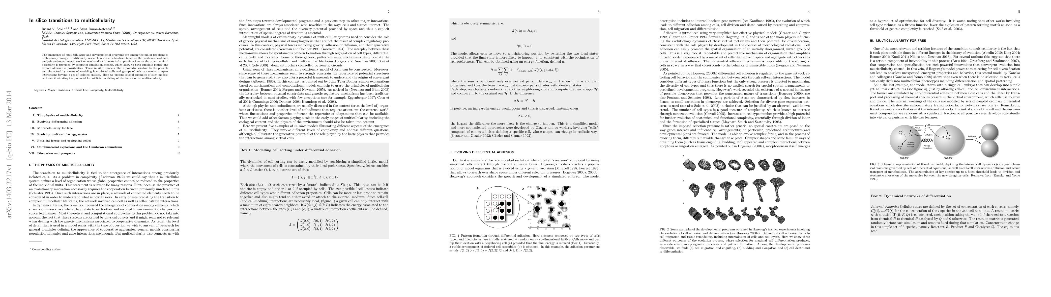 This paper explores the use of computer simulation models to understand the emergence of multicellularity and developmental programs, demonstrating how virtual cells can evolve complex interactions and illustrating the potential of in silico modeling to simulate and explore evolutionary transitions.