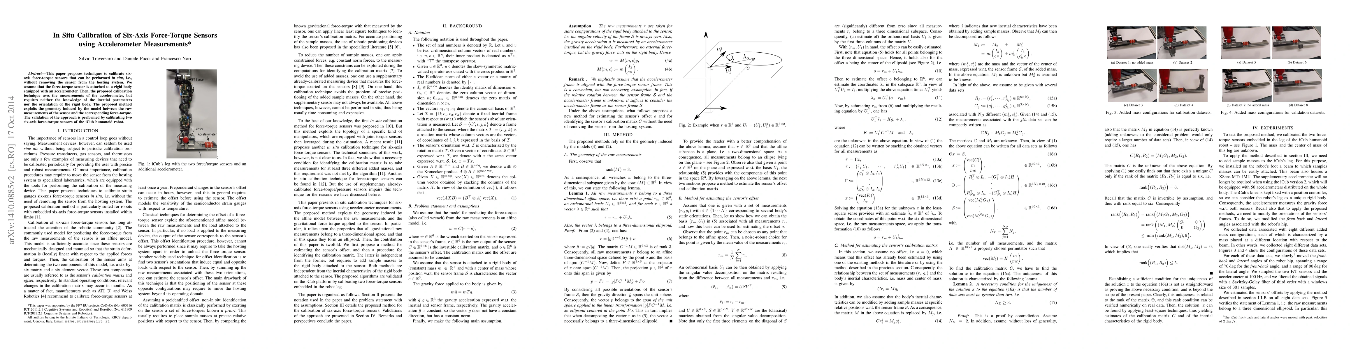 A method to calibrate six-axis force/torque sensors using accelerometer measurements was proposed.