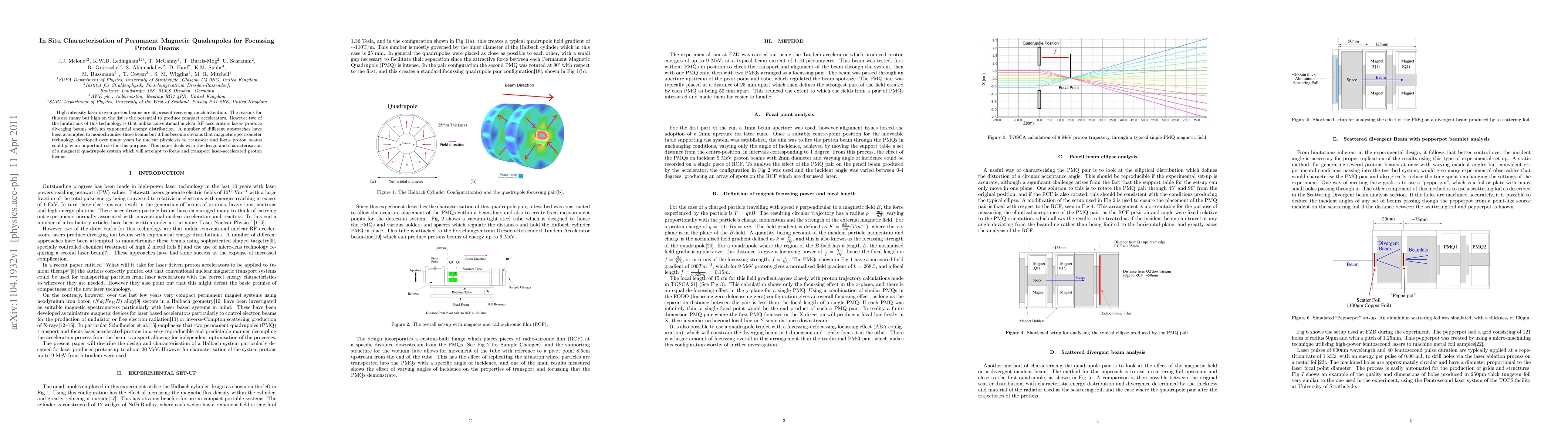 This paper explores the design and in situ characterisation of permanent magnetic quadrupoles aimed at focusing and transporting high-intensity, laser-driven proton beams, addressing the challenges of beam divergence and energy distribution. The focus is on leveraging magnetic spectrometer technology to enhance beam quality for compact accelerators.