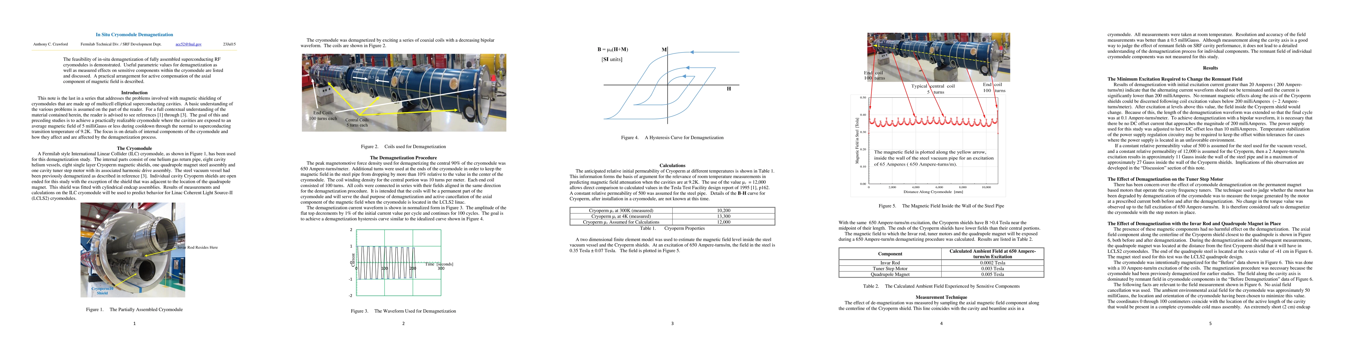The feasibility of in-situ demagnetization of fully assembled superconducting RF cryomodules is demonstrated. Useful parametric values for demagnetization as well as measured effects on sensitive components within the cryomodule are listed and discussed. A practical arrangement for active compensation of the axial component of magnetic field is described.