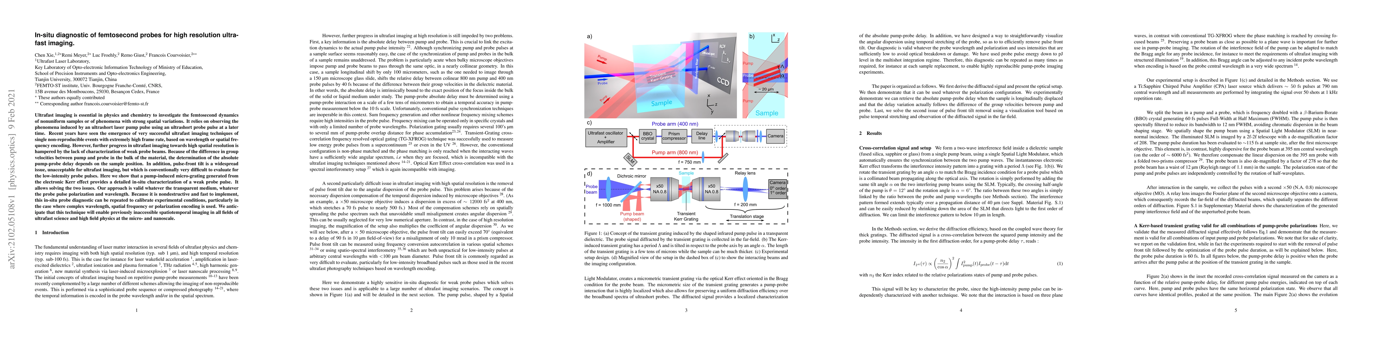 Ultrafast imaging is essential in physics and chemistry to investigate the femtosecond dynamics of nonuniform samples or of phenomena with strong spatial variations. It relies on observing the phenomena induced by an ultrashort laser pump pulse using an ultrashort probe pulse at a later time. Recent years have seen the emergence of very successful ultrafast imaging techniques of single non-reproducible events with extremely high frame rate, based on wavelength or spatial frequency encoding. However, further progress in ultrafast imaging towards high spatial resolution is hampered by the lack of characterization of weak probe beams. Because of the difference in group velocities between pump and probe in the bulk of the material, the determination of the absolute pump-probe delay depends on the sample position. In addition, pulse-front tilt is a widespread issue, unacceptable for ultrafast imaging, but which is conventionally very difficult to evaluate for the low-intensity probe pulses. Here we show that a pump-induced micro-grating generated from the electronic Kerr effect provides a detailed in-situ characterization of a weak probe pulse. It allows solving the two issues. Our approach is valid whatever the transparent medium, whatever the probe pulse polarization and wavelength. Because it is nondestructive and fast to implement, this in-situ probe diagnostic can be repeated to calibrate experimental conditions, particularly in the case where complex wavelength, spatial frequency or polarization encoding is used. We anticipate that this technique will enable previously inaccessible spatiotemporal imaging in all fields of ultrafast science and high field physics at the micro- and nanoscale.