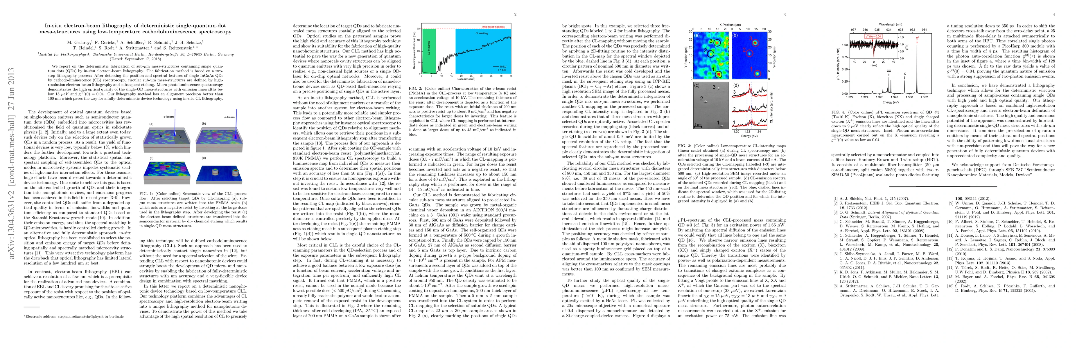 This paper details a method for the deterministic fabrication of single-quantum-dot mesa structures using in-situ electron-beam lithography, employing low-temperature cathodoluminescence spectroscopy for precise alignment and high-resolution etching, resulting in optical quality structures with emission linewidths below 15 µeV.