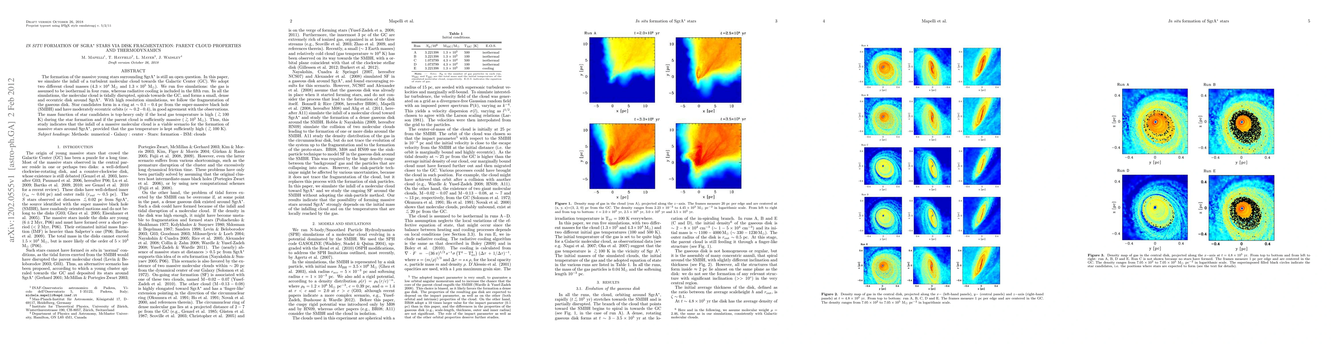 The formation of the massive young stars surrounding SgrA* is still an open question. In this paper, we simulate the infall of a turbulent molecular cloud towards the Galactic Center (GC). We adopt two different cloud masses (4.3x10^4 and 1.3x10^5 solar masses). We run five simulations: the gas is assumed to be isothermal in four runs, whereas radiative cooling is included in the fifth run. In all the simulations, the molecular cloud is tidally disrupted, spirals towards the GC, and forms a small, dense and eccentric disk around SgrA*. With high resolution simulations, we follow the fragmentation of the gaseous disk. Star candidates form in a ring at ~0.1-0.4 pc from the super-massive black hole (SMBH) and have moderately eccentric orbits (~0.2-0.4), in good agreement with the observations. The mass function of star candidates is top-heavy only if the local gas temperature is high (>~100 K) during the star formation and if the parent cloud is sufficiently massive (>~10^5 solar masses). Thus, this study indicates that the infall of a massive molecular cloud is a viable scenario for the formation of massive stars around SgrA*, provided that the gas temperature is kept sufficiently high (>~100 K).