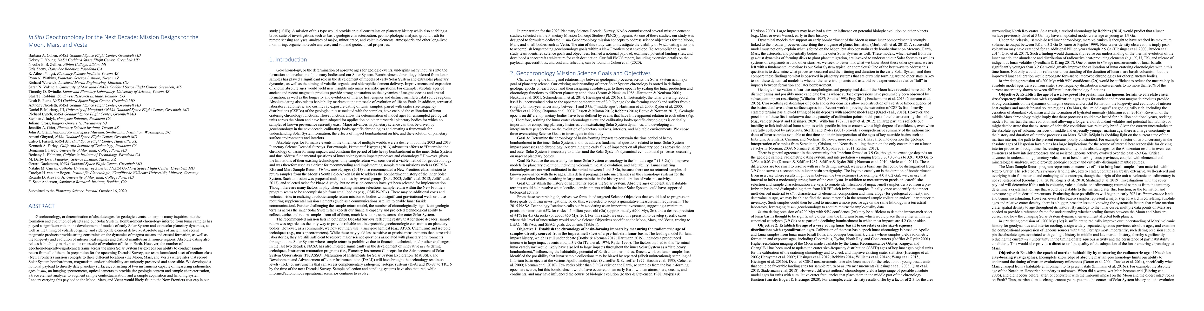 This paper proposes medium-class mission concepts for the Moon, Mars, and Vesta to conduct in situ geochronology, aiming to determine absolute ages of geologic events and enhance understanding of planetary formation and evolution. The proposed payload includes instruments for radiometric dating, imaging, and sample analysis, fitting within the New Frontiers cost cap.