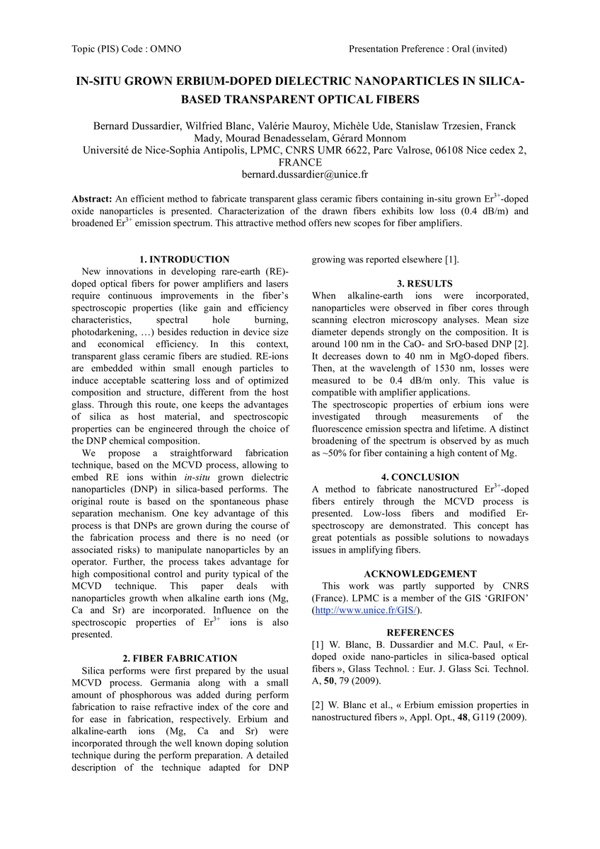 This paper presents a technique for creating transparent optical fibers with in-situ grown erbium-doped nanoparticles, achieving low loss of 0.4 dB/m and broadened emission spectrum, opening new possibilities for fiber amplifiers.