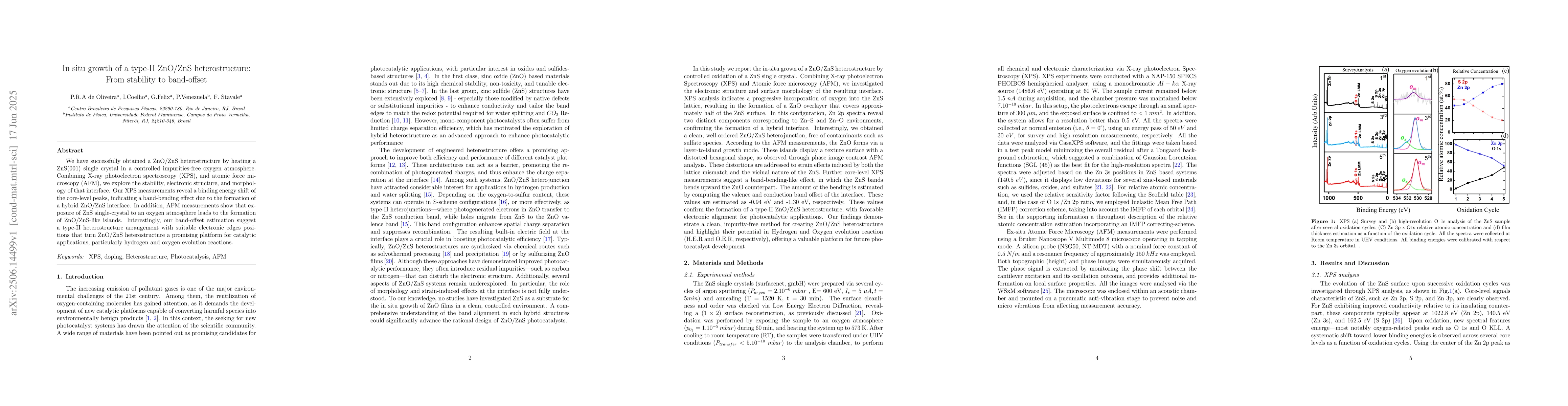 We have successfully obtained a ZnO/ZnS heterostructure by heating a ZnS(001) single crystal in a controlled impurities-free oxygen atmosphere. Combining X-ray photoelectron spectroscopy (XPS), and atomic force microscopy (AFM), we explore the stability, electronic structure, and morphology of that interface. Our XPS measurements reveal a binding energy shift of the core-level peaks, indicating a band-bending effect due to the formation of a hybrid ZnO/ZnS interface. In addition, AFM measurements show that exposure of ZnS single-crystal to an oxygen atmosphere leads to the formation of ZnO/ZnS-like islands. Interestingly, our band-offset estimation suggest a type-II heterostructure arrangement with suitable electronic edges positions that turn ZnO/ZnS heterostructure a promising platform for catalytic applications, particularly hydrogen and oxygen evolution reactions.