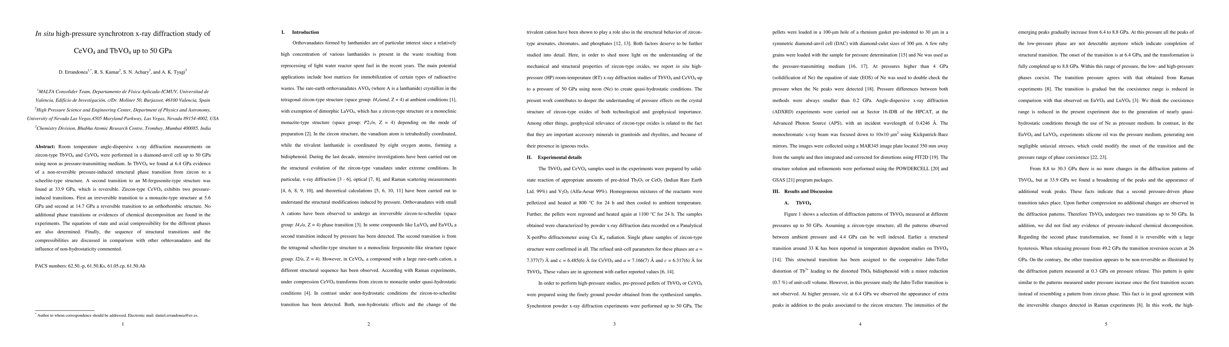 This study investigates the high-pressure structural transitions of CeVO4 and TbVO4 using synchrotron x-ray diffraction up to 50 GPa, revealing multiple phase transitions in both compounds, including reversible and irreversible changes, and determining their equations of state and compressibilities.