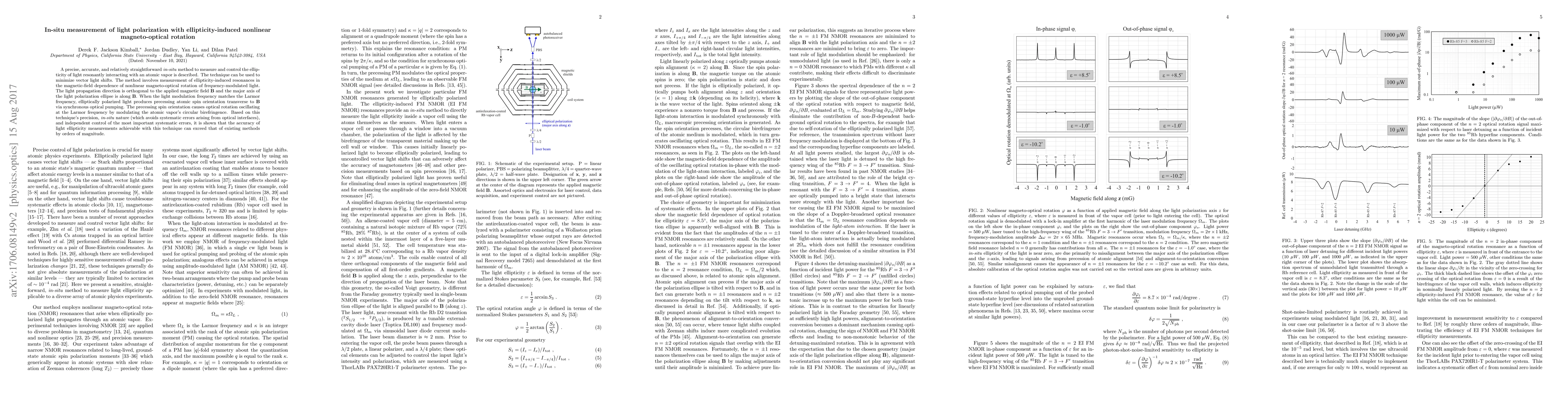 This paper introduces a novel in-situ method for precisely measuring light ellipticity through nonlinear magneto-optical rotation, significantly improving accuracy over existing techniques by minimizing vector light shifts and avoiding systematic errors. The method leverages ellipticity-induced resonances in the magnetic-field dependence of frequency-modulated light interacting with an atomic vapor.