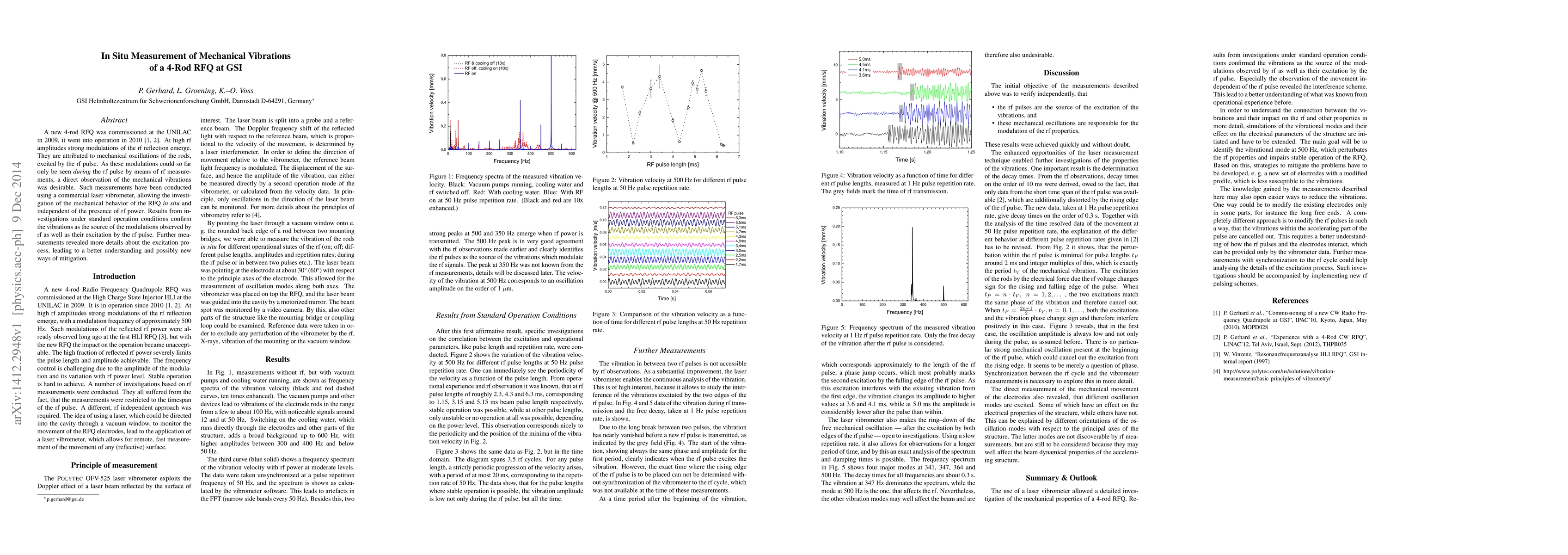 A new 4-rod RFQ was commissioned at the UNILAC in 2009, it went into operation in 2010. At high rf amplitudes strong modulations of the rf reflection emerge. They are attributed to mechanical oscillations of the rods, excited by the rf pulse. As these modulations could so far only be seen during the rf pulse by means of rf measurements, a direct observation of the mechanical vibrations was desirable. Such measurements have been conducted using a commercial laser vibrometer, allowing the investigation of the mechanical behavior of the RFQ in situ and independent of the presence of rf power. Results from investigations under standard operation conditions confirm the vibrations as the source of the modulations observed by rf as well as their excitation by the rf pulse. Further measurements revealed more details about the excitation process, leading to a better understanding and possibly new ways of mitigation.
